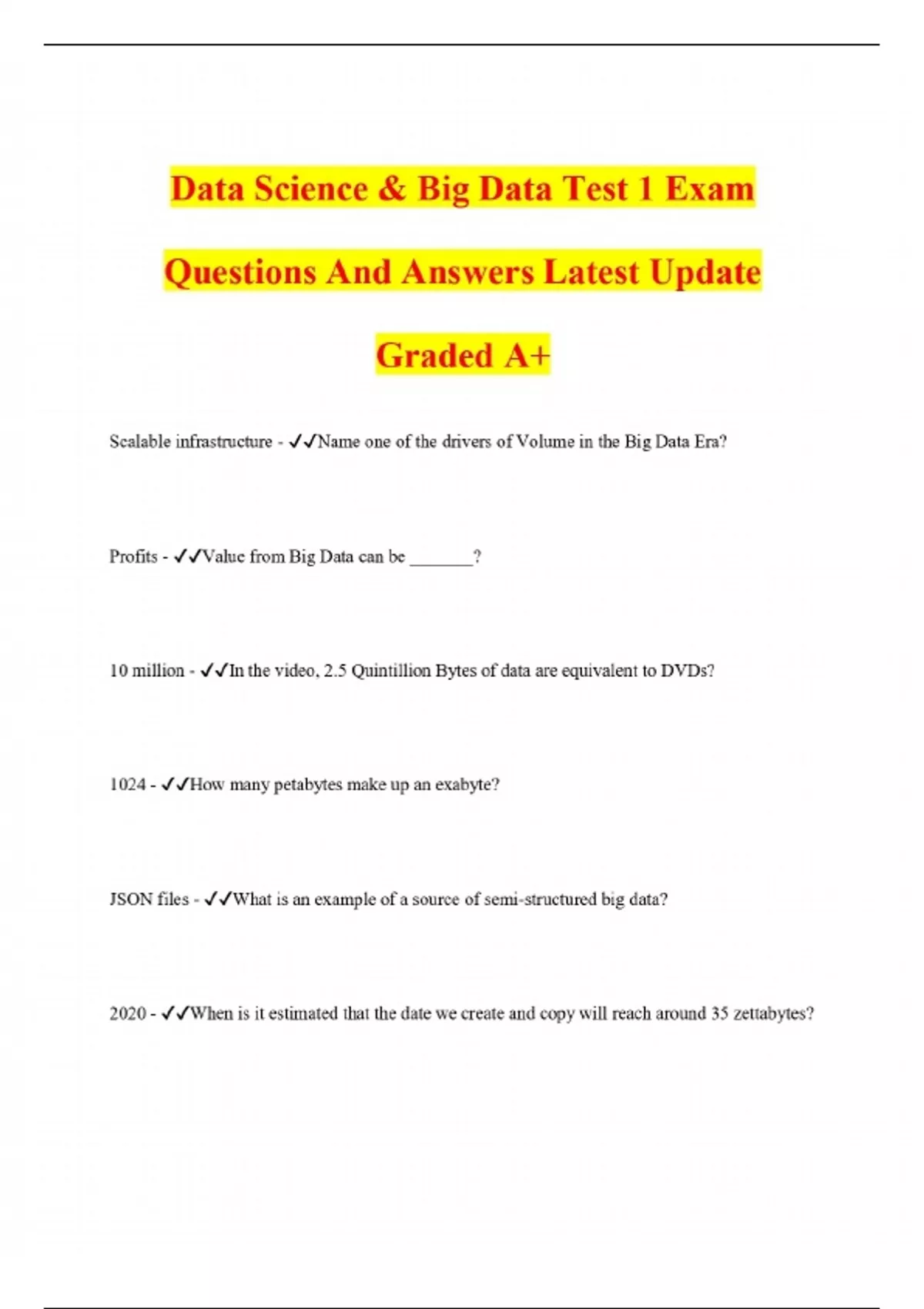Data Science Bundled Exam Questions And Answers Latest Update Graded A+