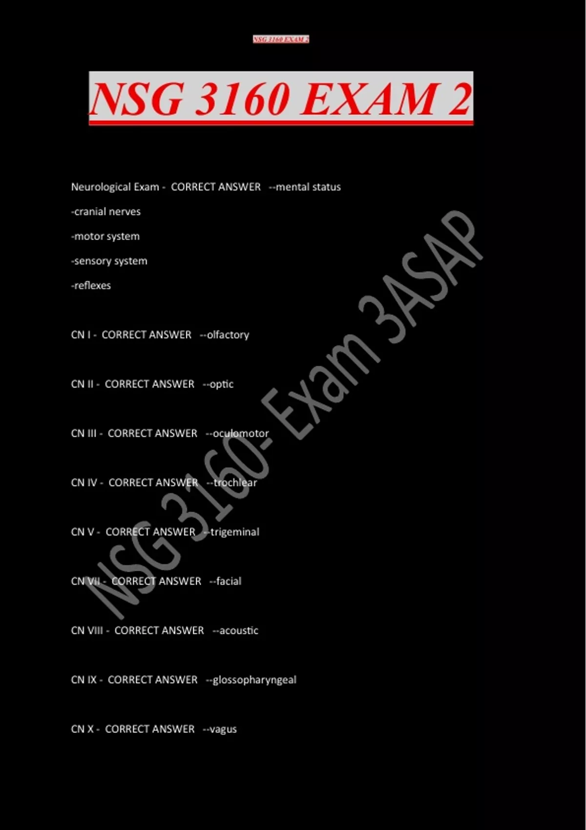 CN V - CORRECT ANSWER --trigeminal