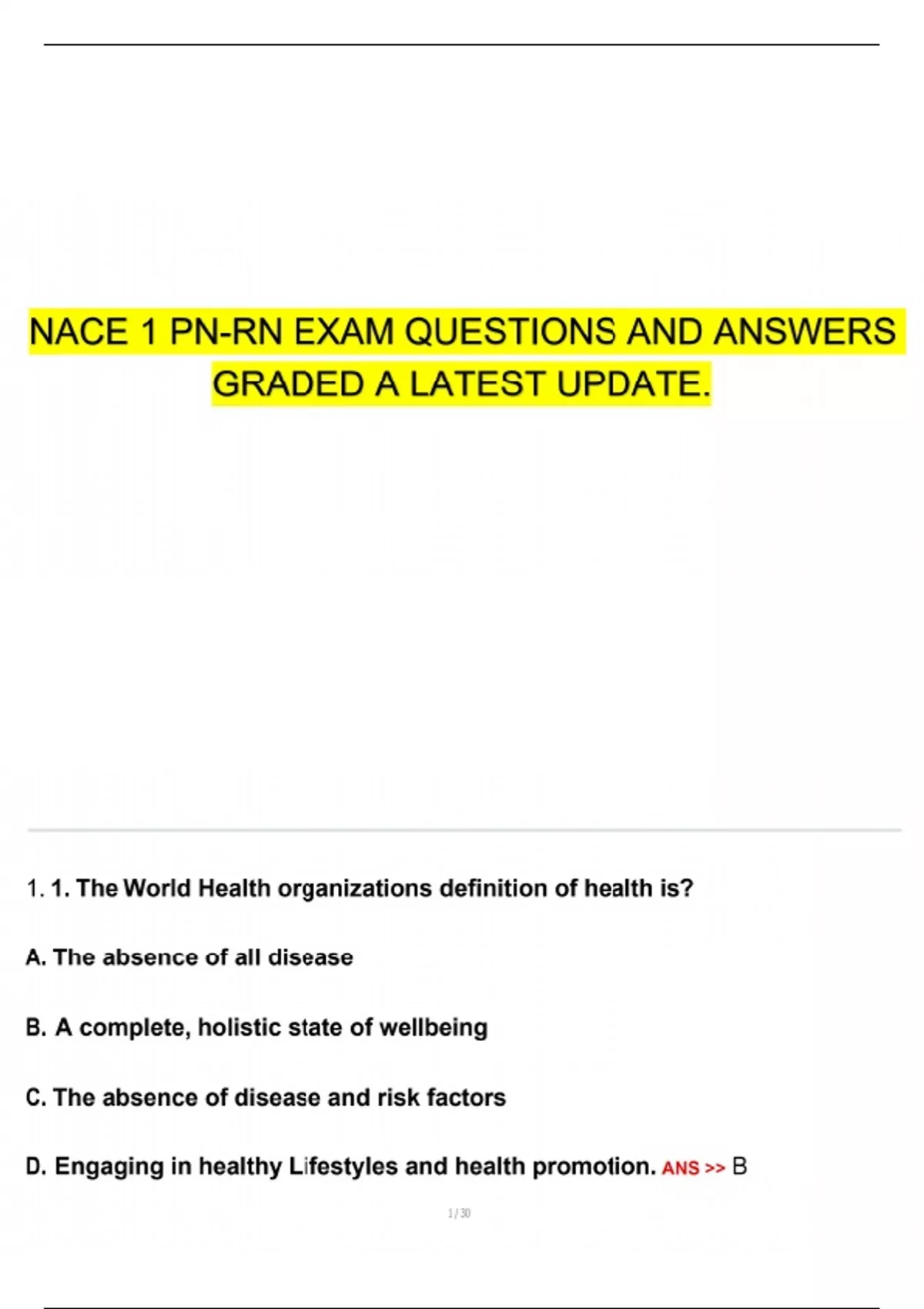 NACE 1 PN-RN EXAM QUESTIONS AND ANSWERS GRADED A LATEST UPDATE.