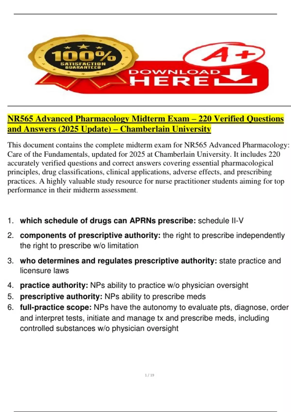 and Answers (2025 Update) – Chamberlain University