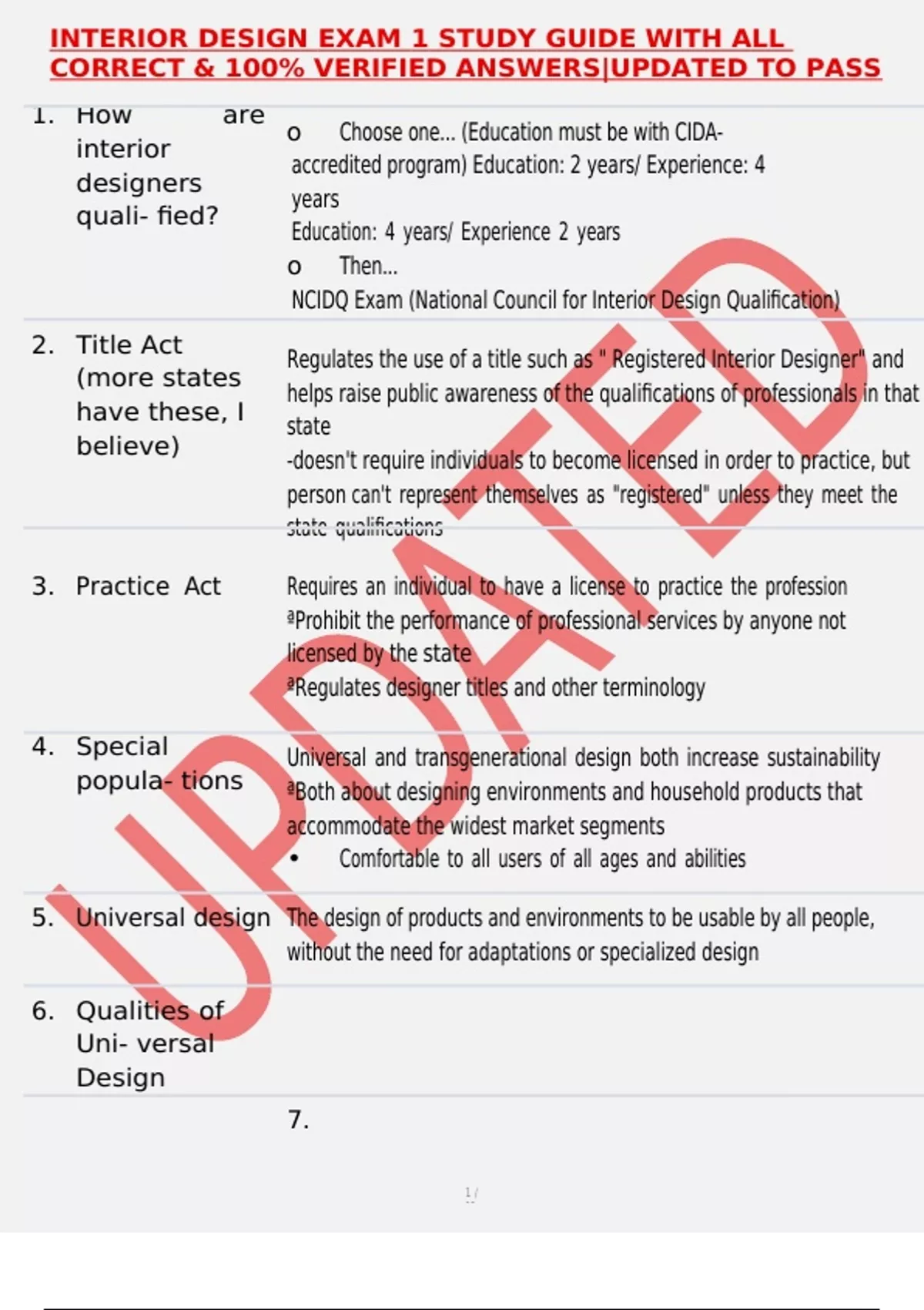 INTERIOR DESIGN EXAM 1 STUDY GUIDE WITH ALL CORRECT & 100% VERIFIED ANSWERS|UPDATED TO PASS