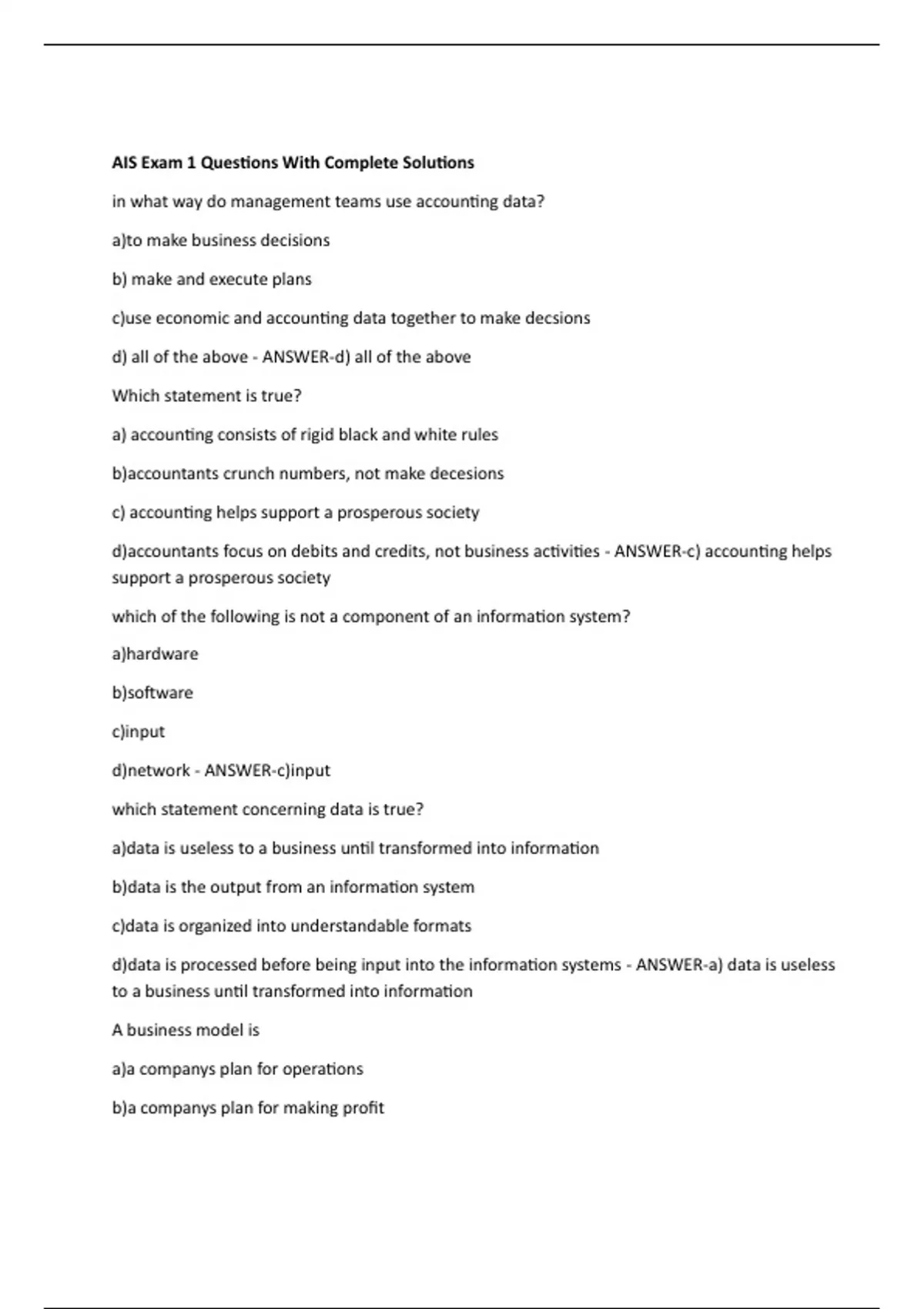 AIS Exam 1 Questions With Complete Solutions