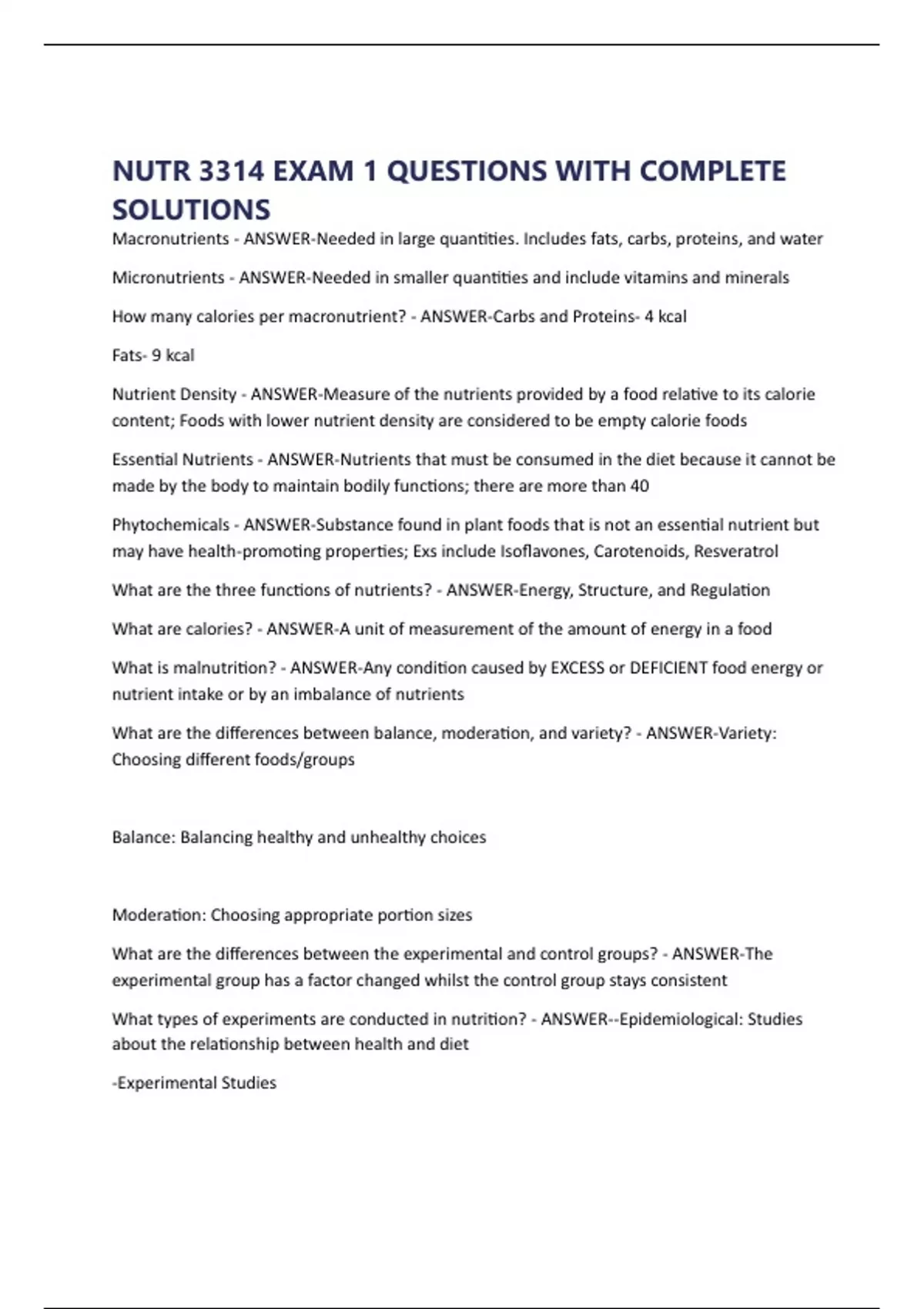 What are the differences between the experimental and control groups? - ANSWER-The
