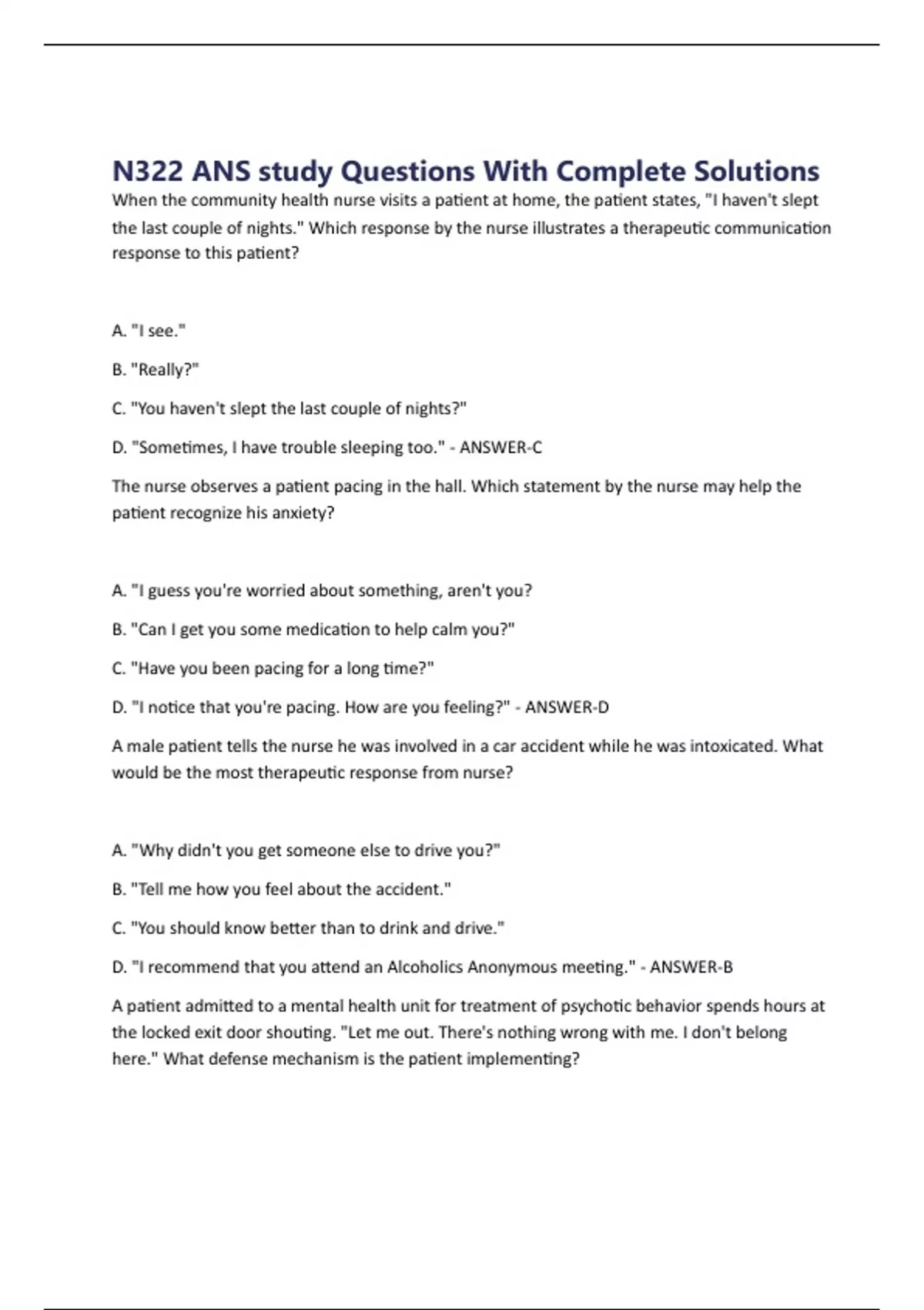 the last couple of nights." Which response by the nurse illustrates a therapeutic communication