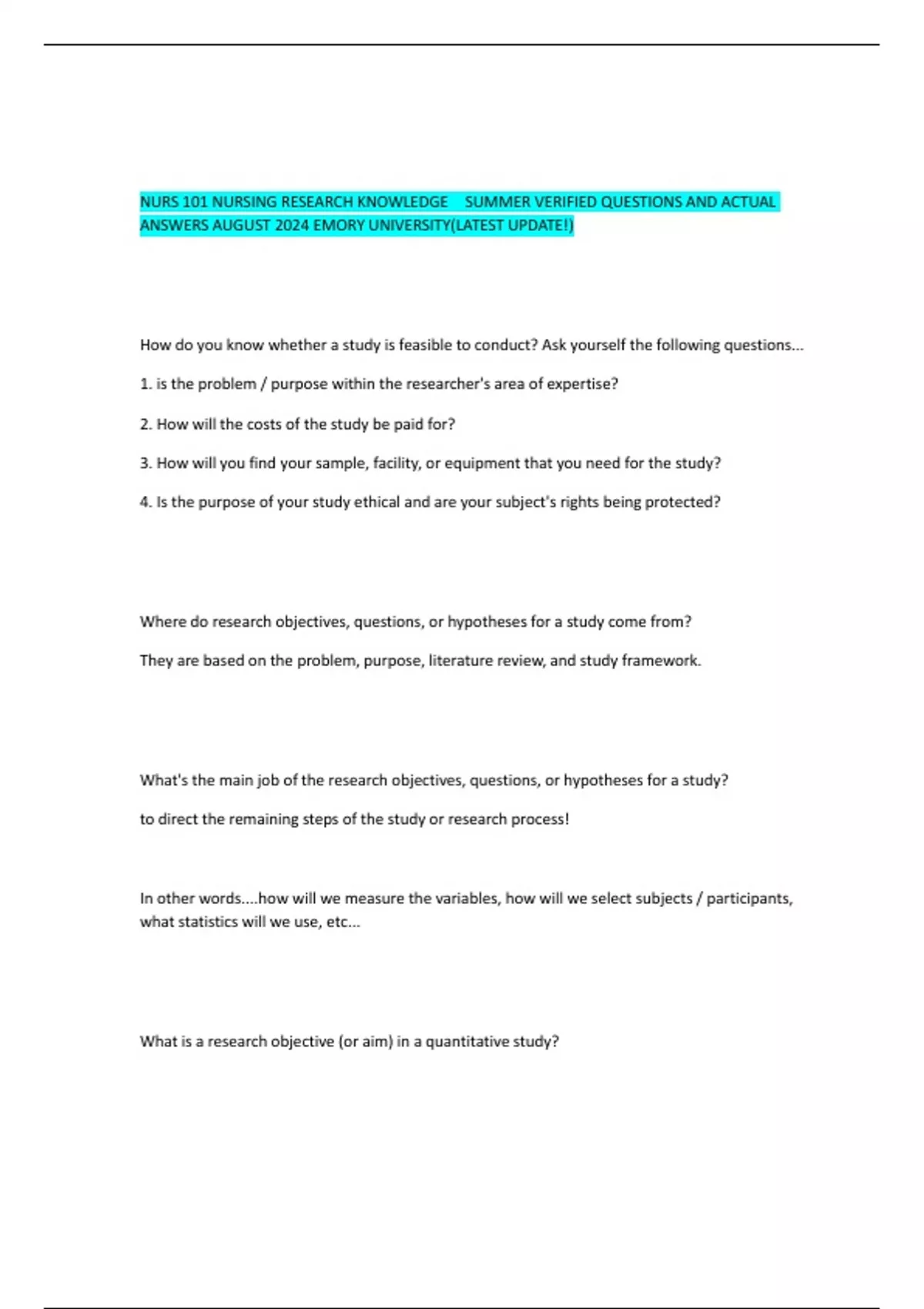 ANSWERS AUGUST 2024 EMORY UNIVERSITY(LATEST UPDATE!)