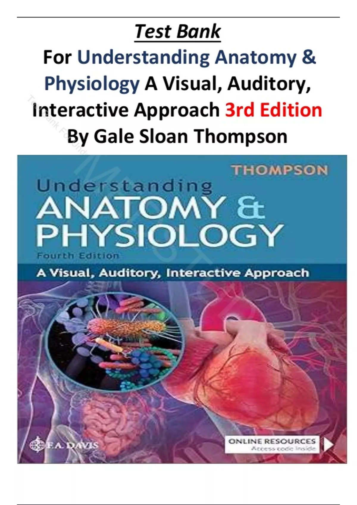 Test Bank For Understanding Anatomy & Physiology: A Visual, Auditory, Interactive Approach Fourth Edition by Gale Sloan Thompson RN||ISBN:9781719647625