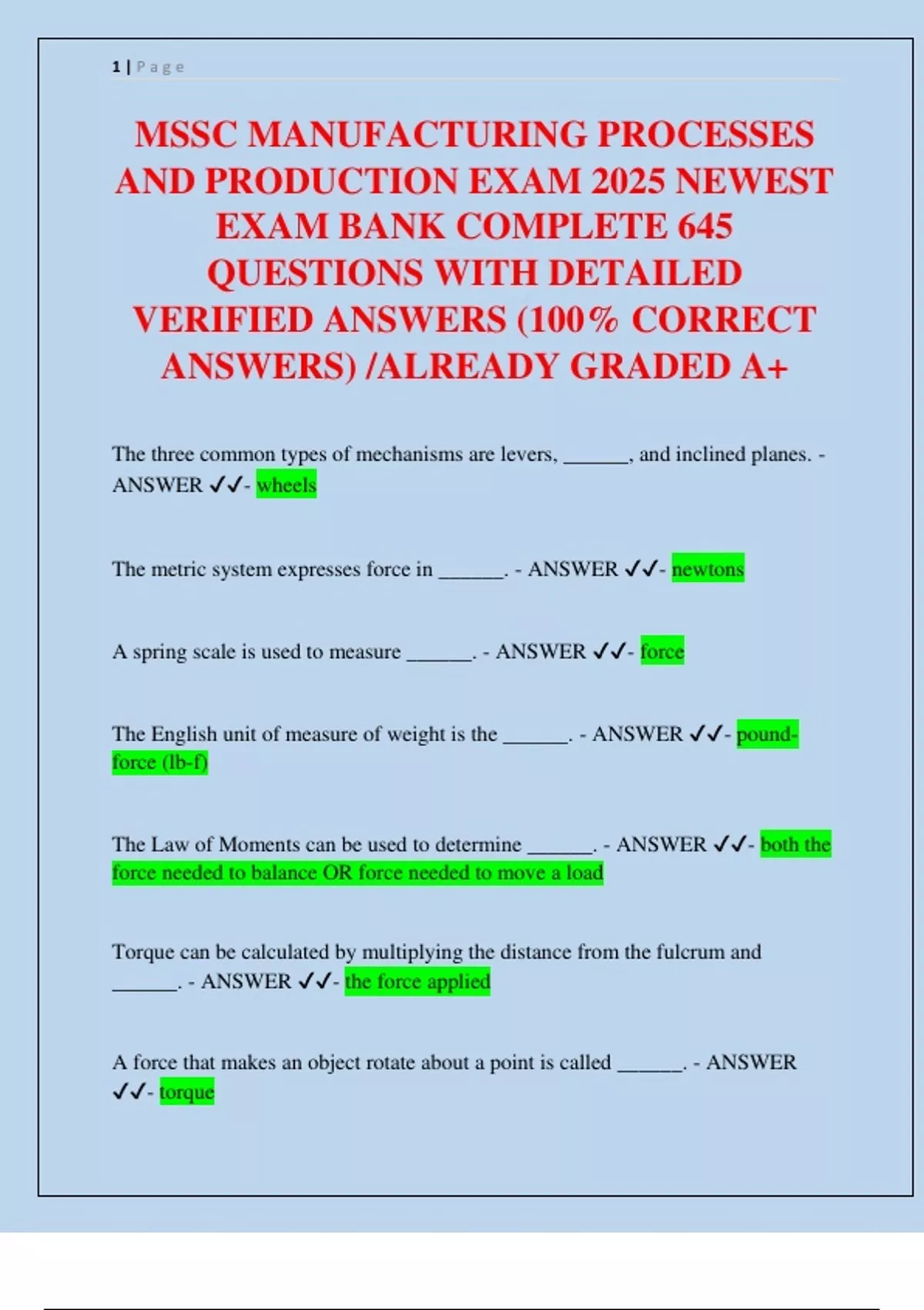 A spring scale is used to measure ______. - ANSWER ✔✔- force