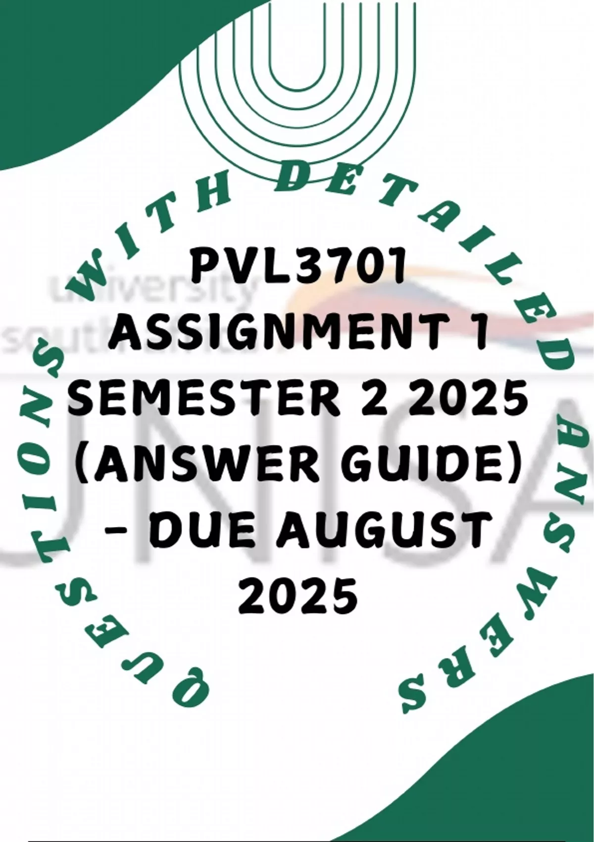 PVL3701 Assignment 1 Semester 2 2025 (Answer Guide) - Due August 2025