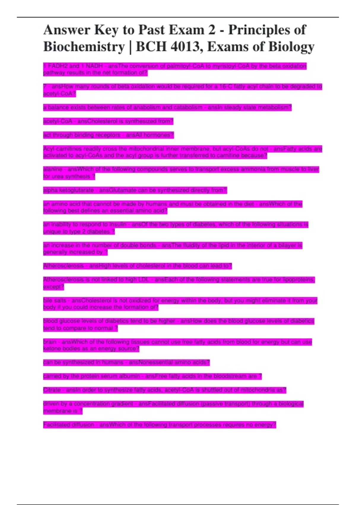 Biochemistry | BCH 4013, Exams of Biology