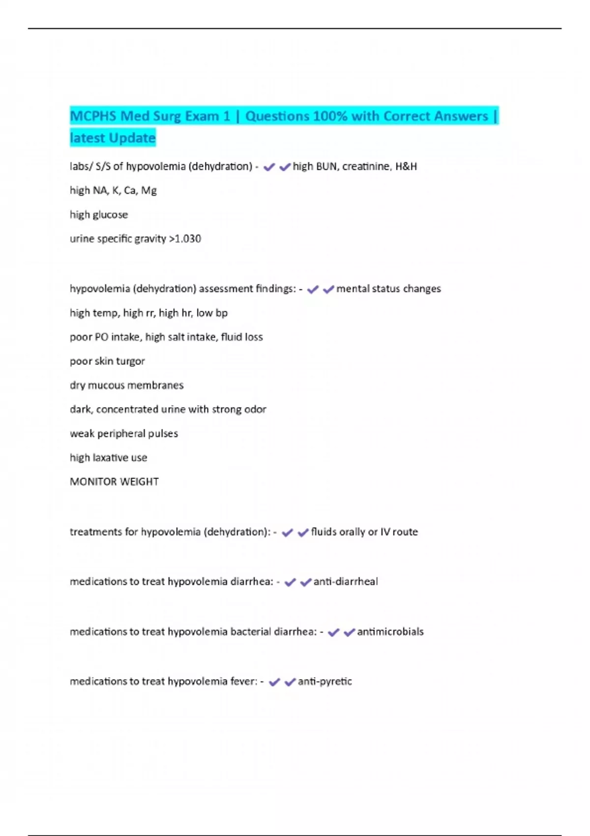 MCPHS Med Surg Exam 1 | Questions 100% with Correct Answers | latest Update