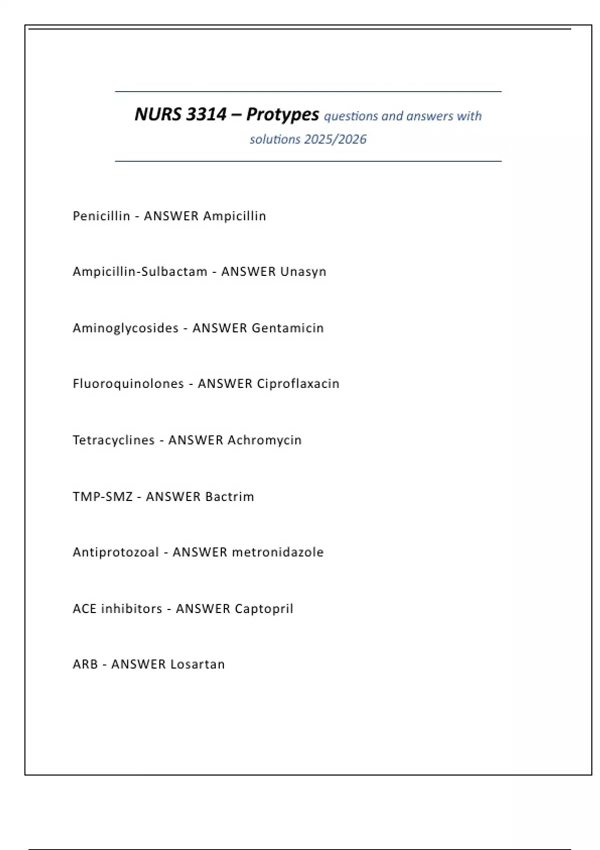 NURS 3314 – Protypes questions and answers with solutions 2025/2026