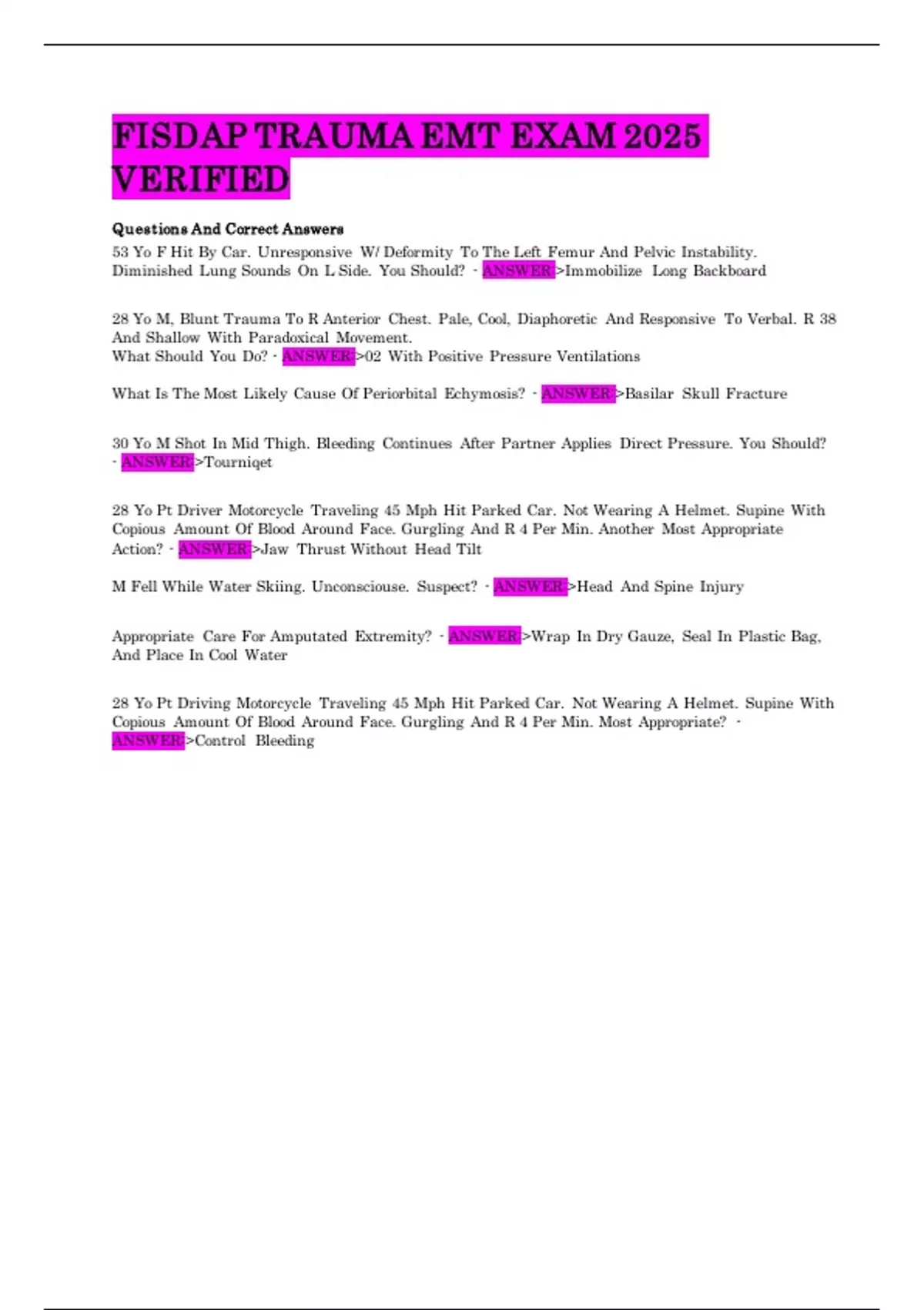 Diminished Lung Sounds On L Side. You Should? - ANSWER:>Immobilize Long Backboard