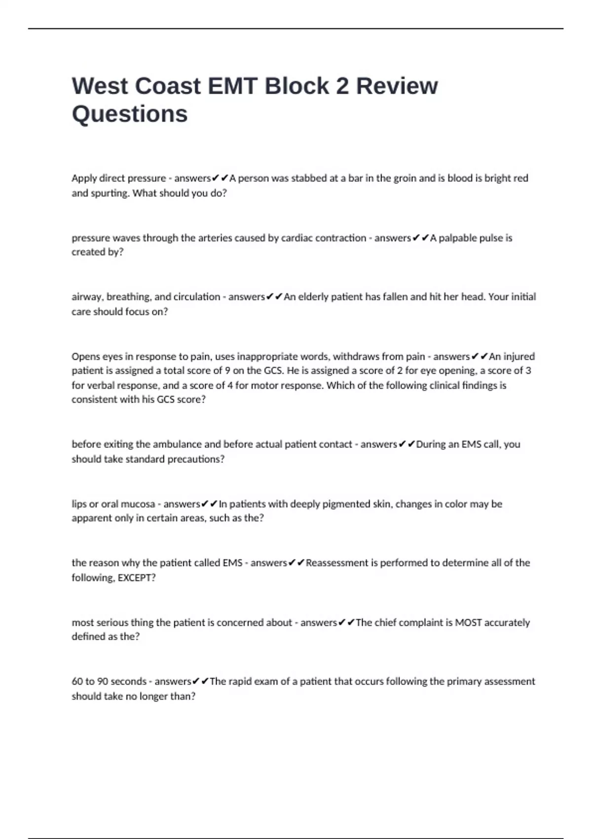 West Coast EMT Block 2 Review