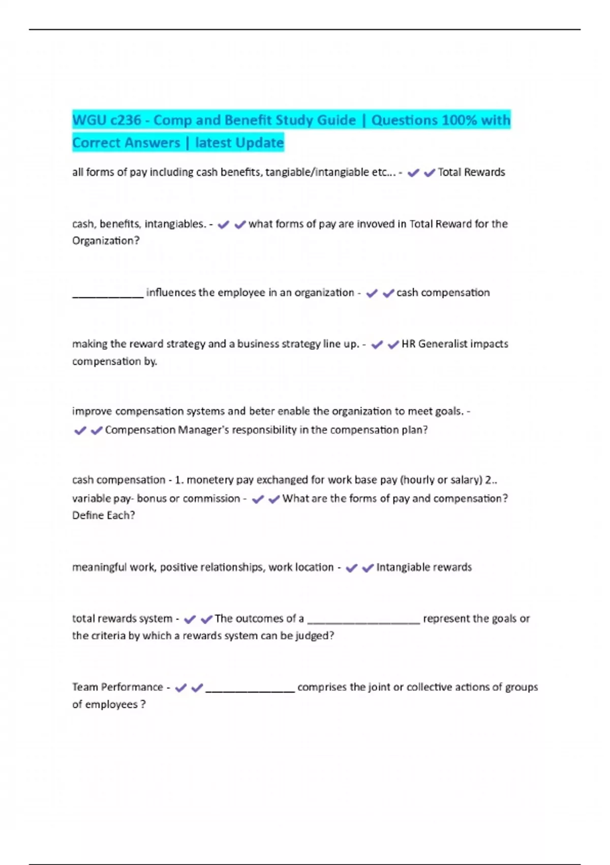 WGU c236 - Comp and Benefit Study Guide | Questions 100% with Correct Answers | latest Update