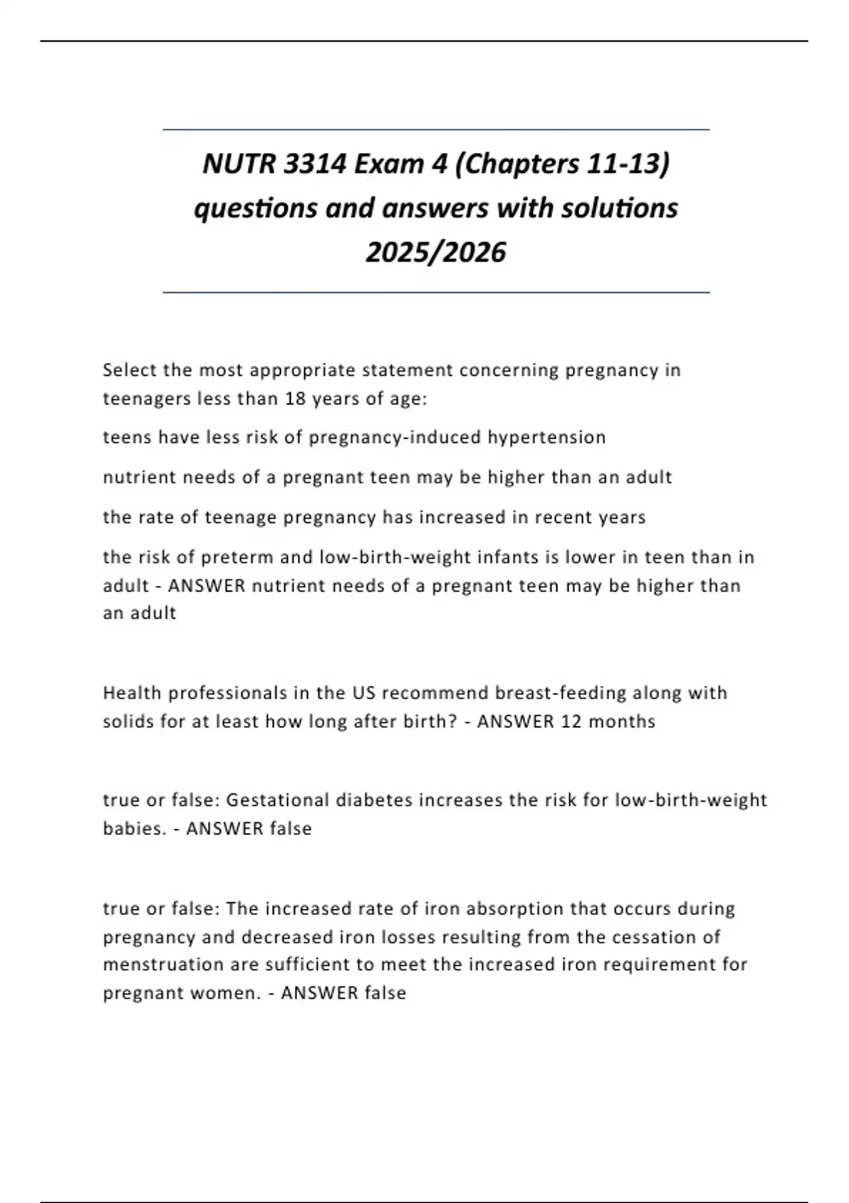 adult - ANSWER nutrient needs of a pregnant teen may be higher than