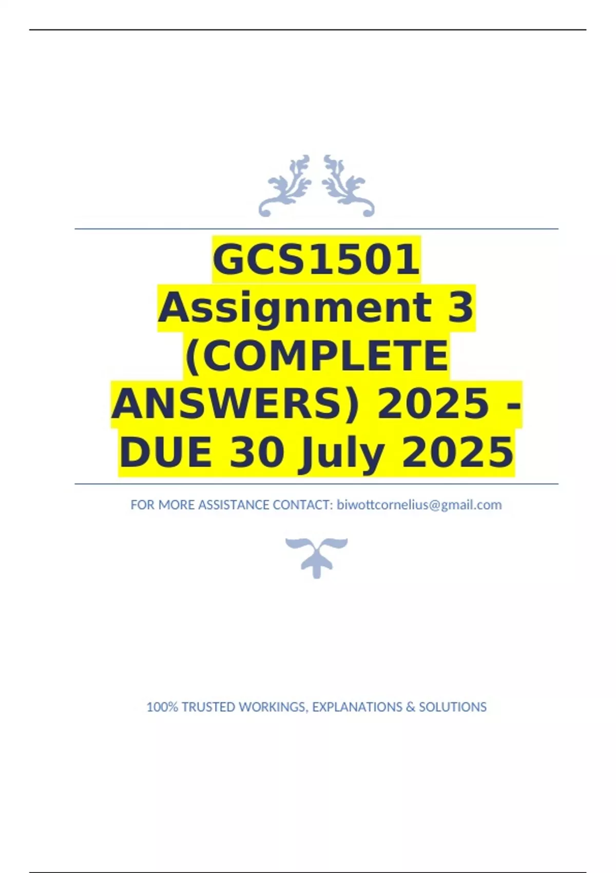 ANSWERS) 2025 - DUE 30 July 2025