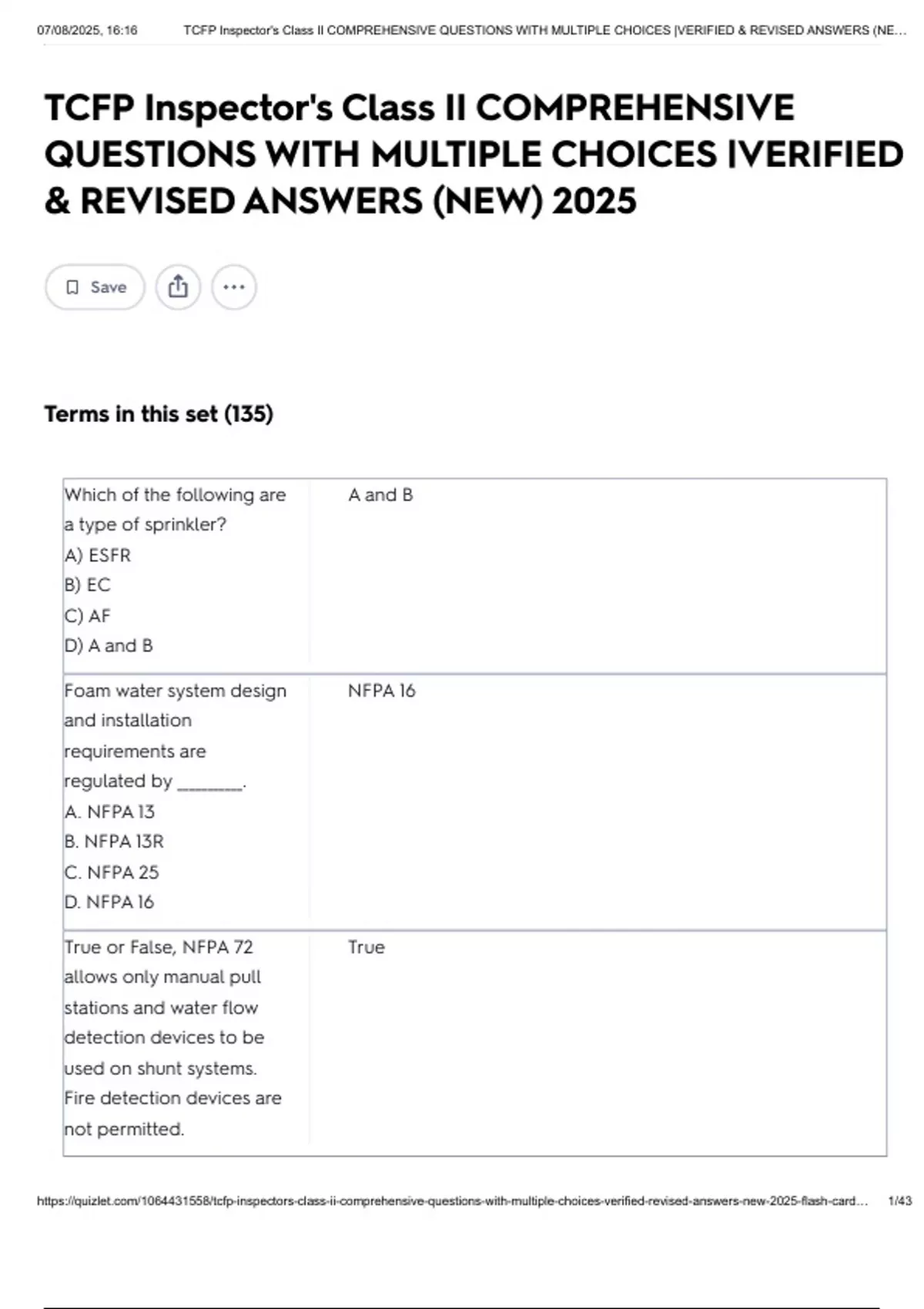 07/08/2025, 16:16 TCFP Inspector's Class II COMPREHENSIVE QUESTIONS WITH MULTIPLE CHOICES |VERIFIED & REVISED ANSWERS (NE…