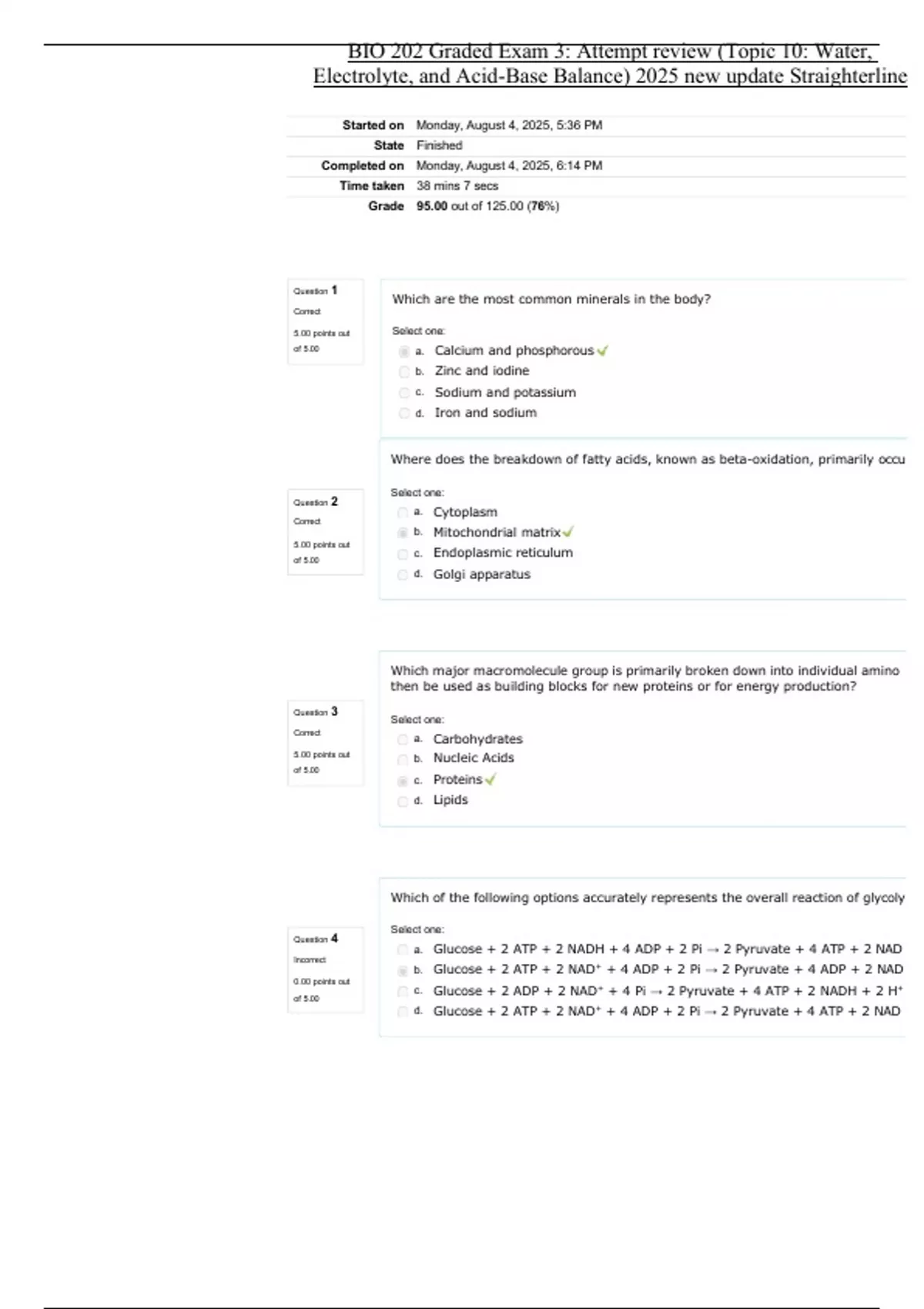 BIO 202 Graded Exam 3: Attempt review (Topic 10: Water, Electrolyte, and Acid-Base Balance) 2025 new update Straighterline