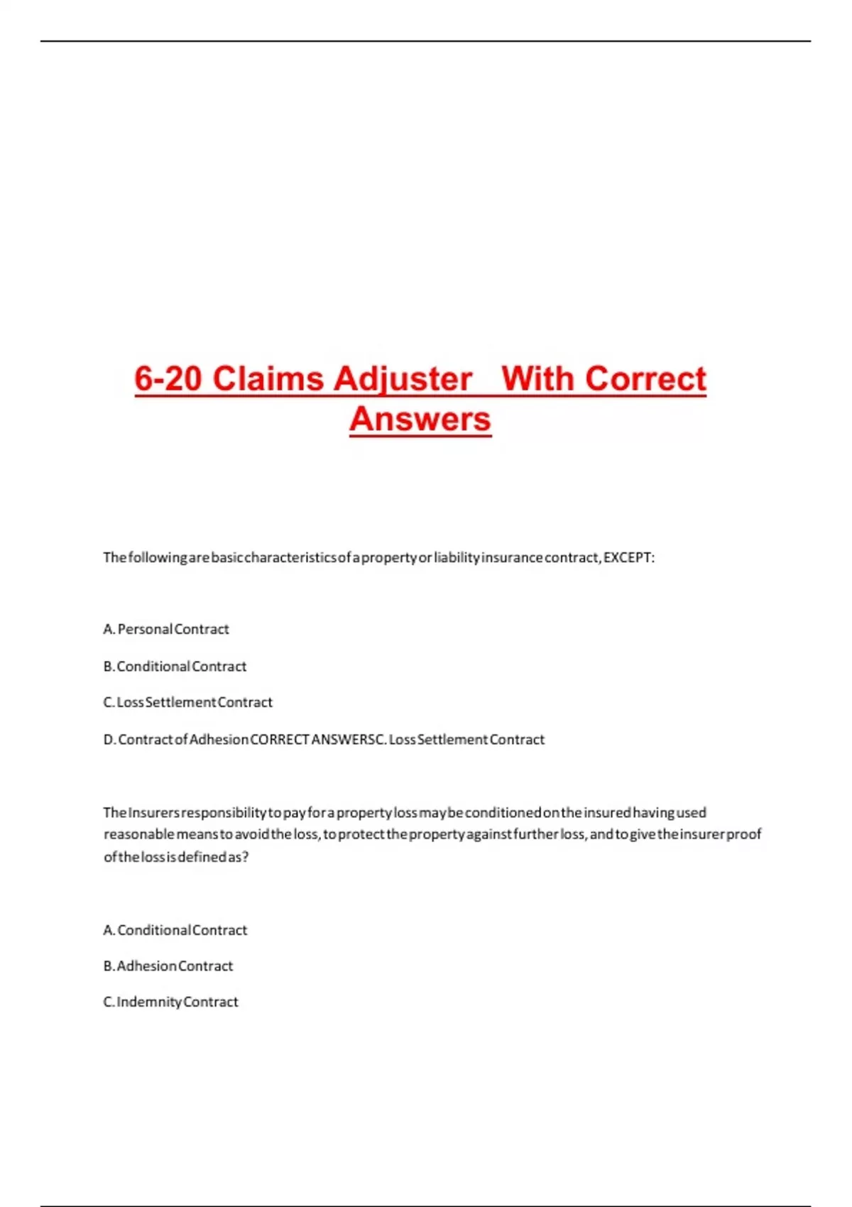 D. Contract of Adhesion CORRECT ANSWERSC. Loss Settlement Contract