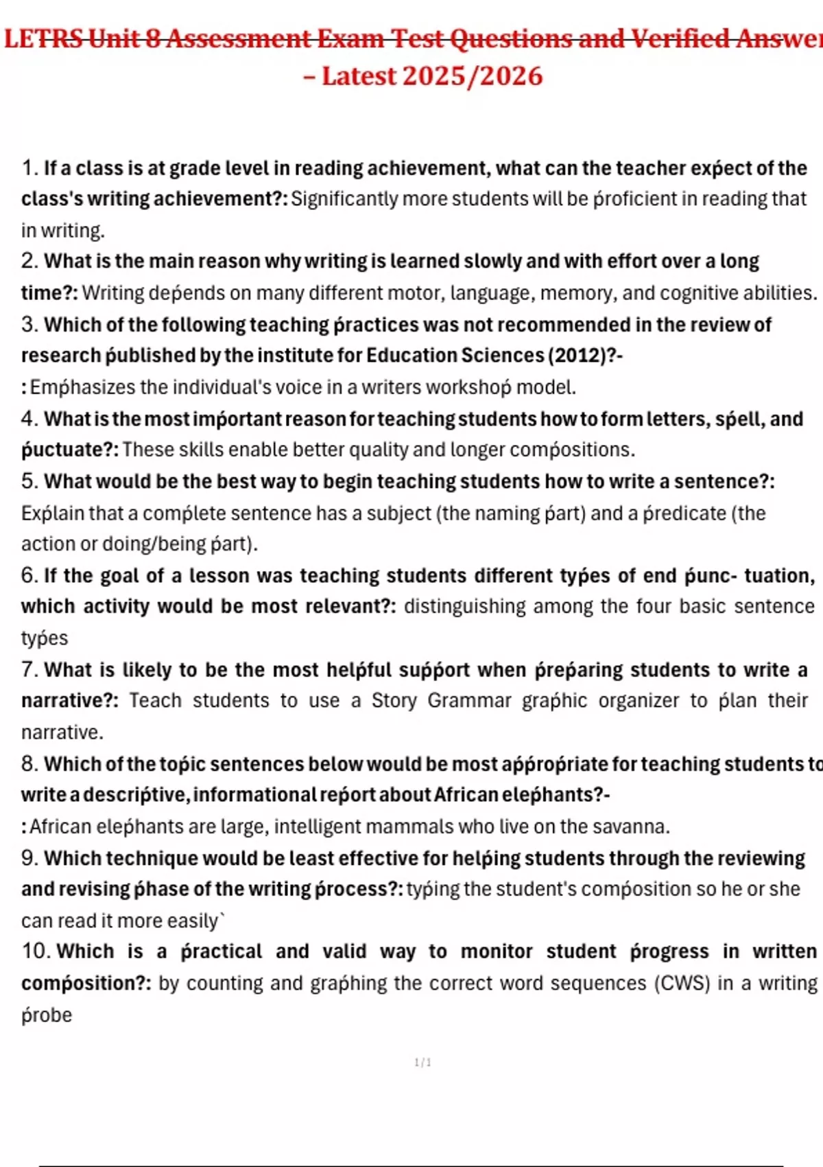 5. What would be the best way to begin teaching students how to write a sentence?: