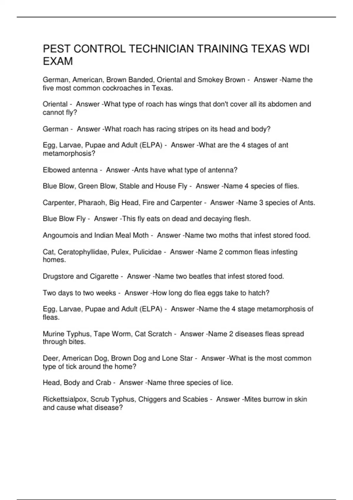 PEST CONTROL TECHNICIAN TRAINING TEXAS WDI EXAM