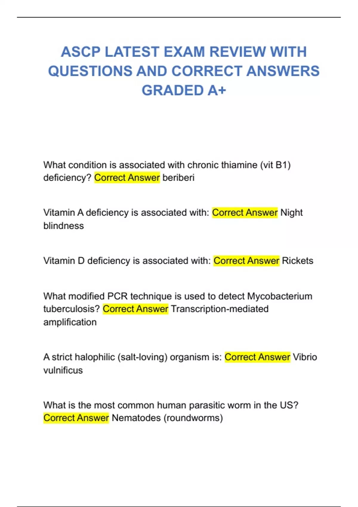 ASCP LATEST EXAM REVIEW WITH QUESTIONS AND CORRECT ANSWERS GRADED A+