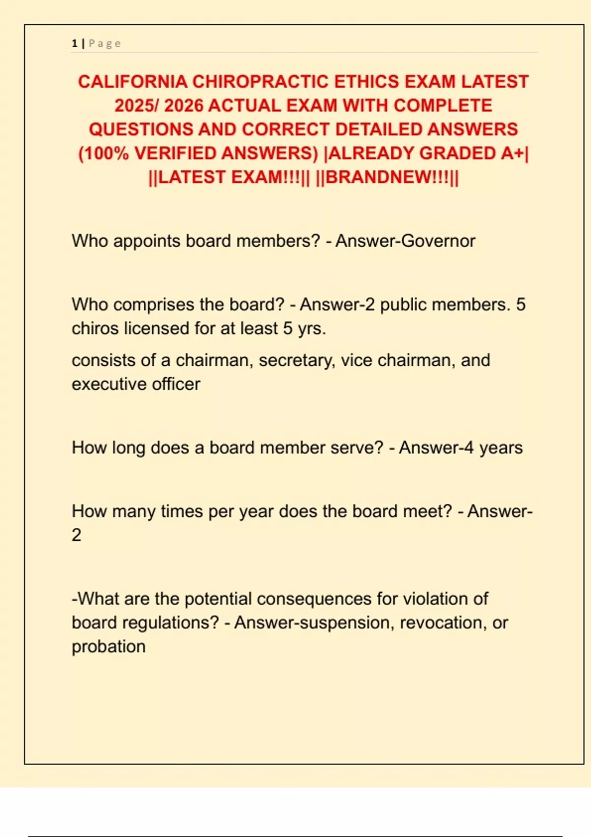 CALIFORNIA CHIROPRACTIC ETHICS EXAM LATEST