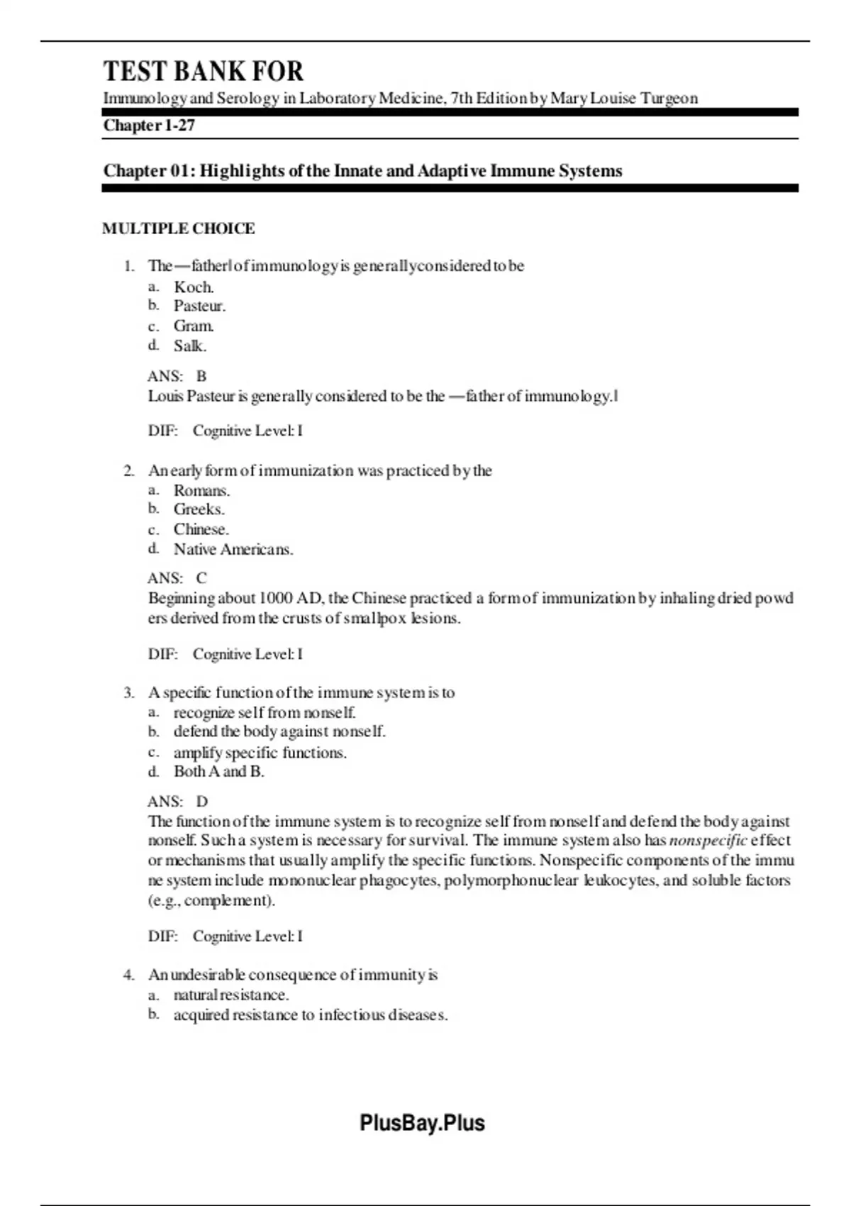 TEST BANK FOR Immunology & Serology in Laboratory Medicine 7th Edition by Mary Louise Turgeon ,..ISBN:978-0323711937 ALL CHAPTERS COVERED!! 100% COMPLETE GUIDE!! A+ GRADE ASSURED!!