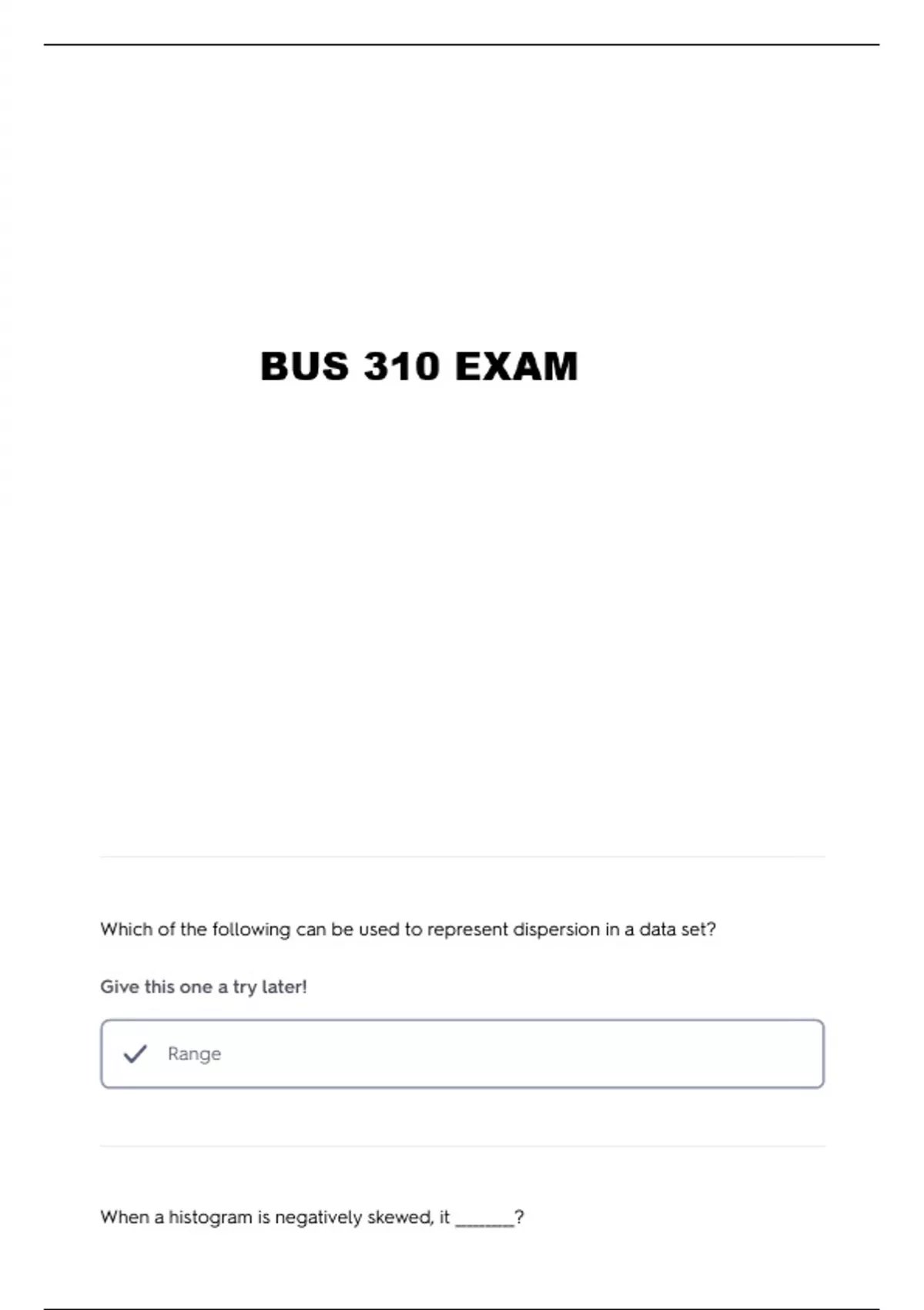 BUS 310 PRACTICE QUESTIONS AND VERIFIED ANSWERS