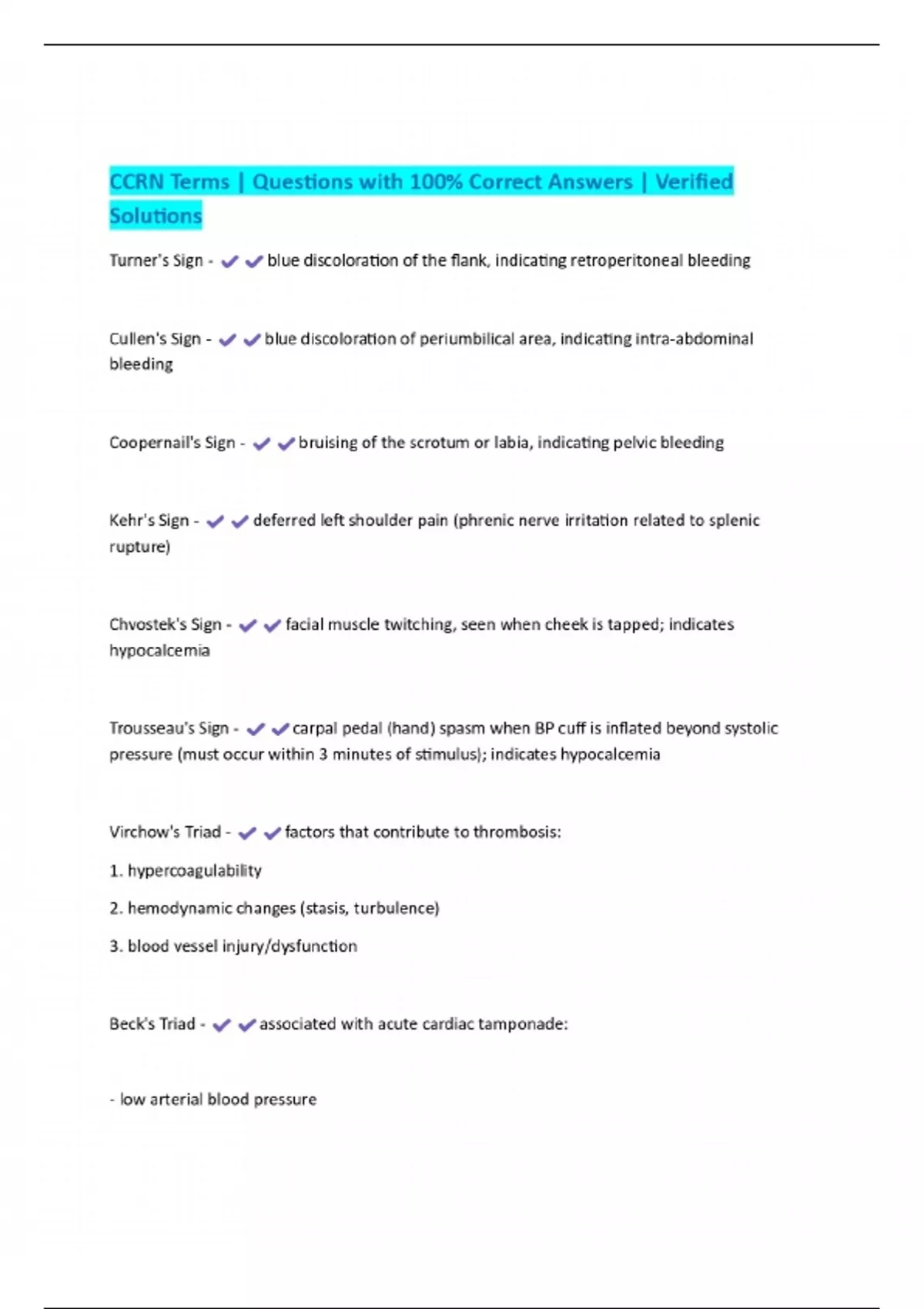 CCRN Terms | Questions with 100% Correct Answers | Verified Solutions