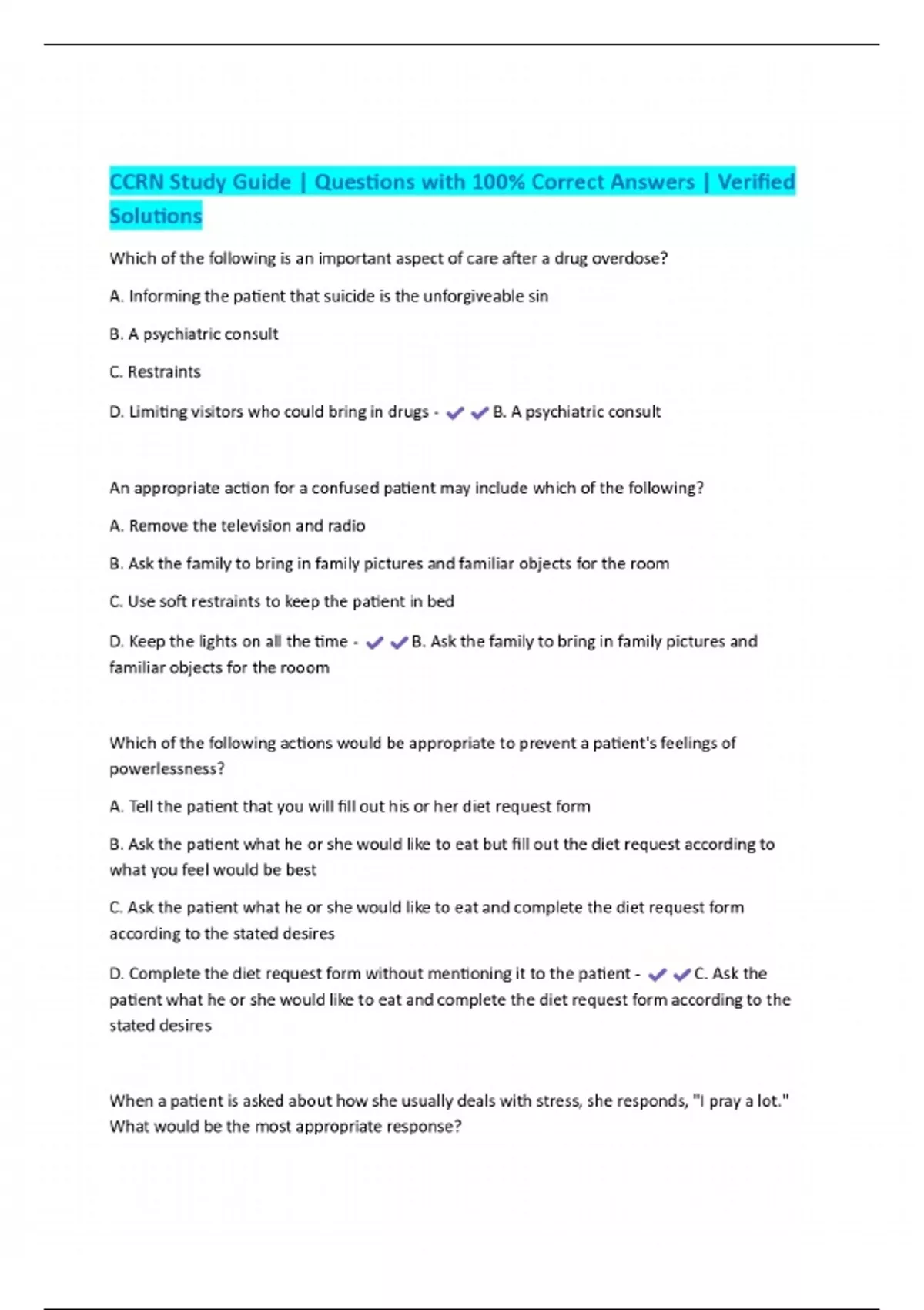 CCRN Study Guide | Questions with 100% Correct Answers | Verified Solutions