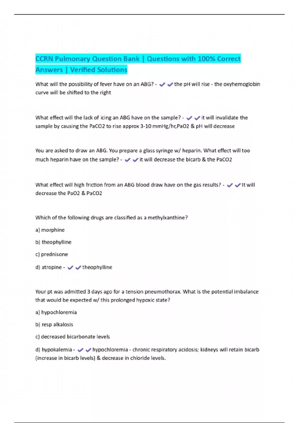 CCRN Pulmonary Question Bank | Questions with 100% Correct Answers | Verified Solutions
