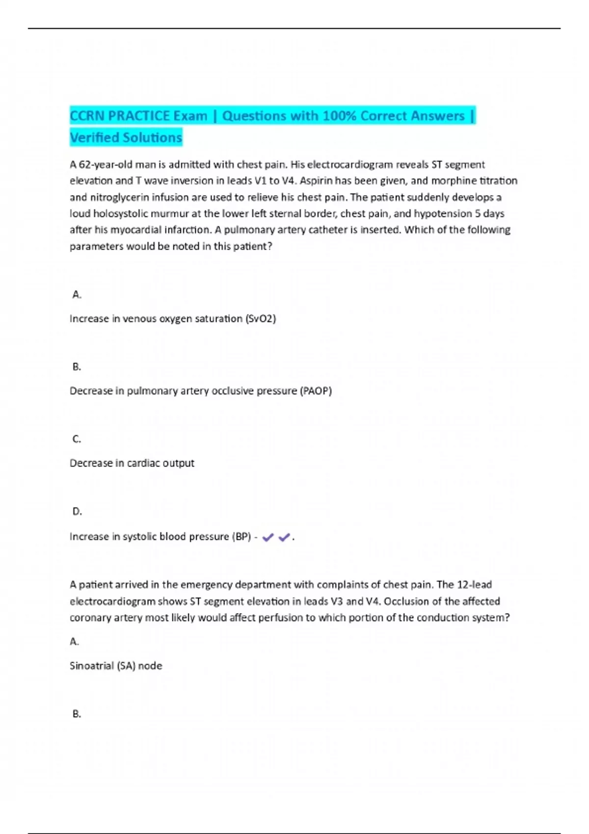 CCRN PRACTICE Exam | Questions with 100% Correct Answers | Verified Solutions