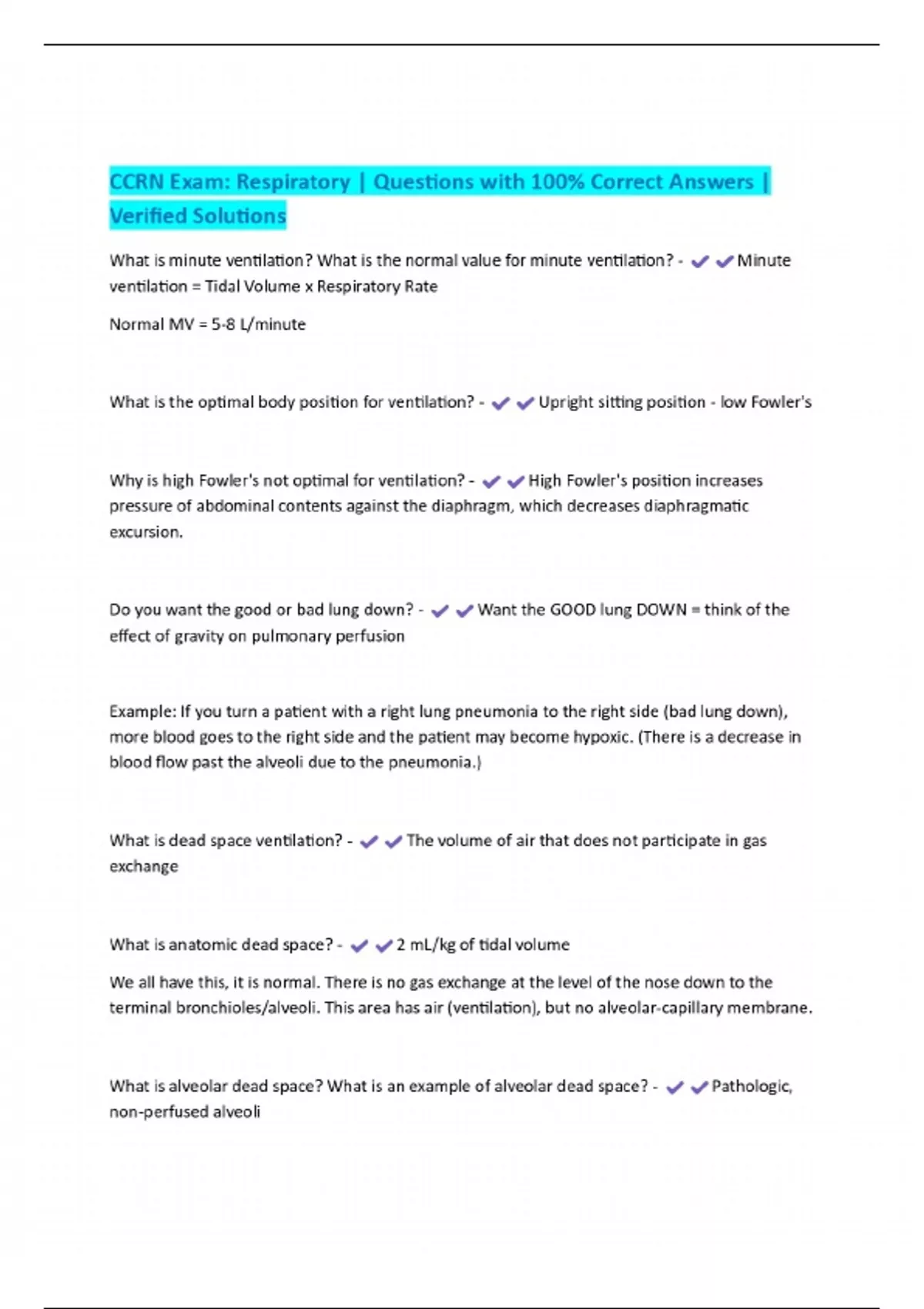 CCRN Exam: Respiratory | Questions with 100% Correct Answers | Verified Solutions