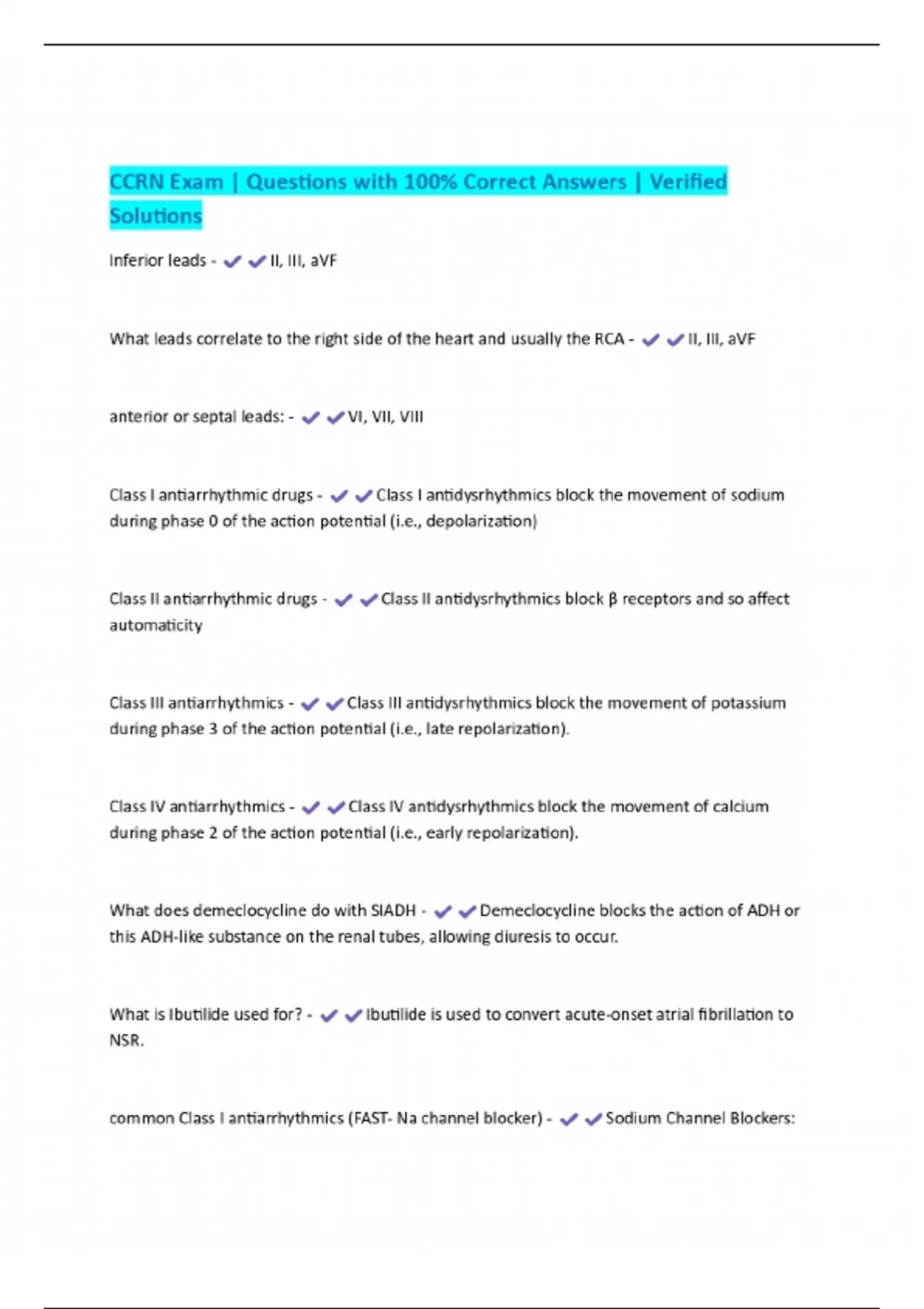 CCRN Exam | Questions with 100% Correct Answers | Verified Solutions