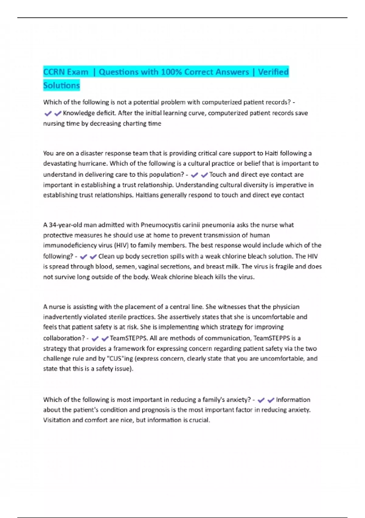 CCRN Exam | Questions with 100% Correct Answers | Verified Solutions