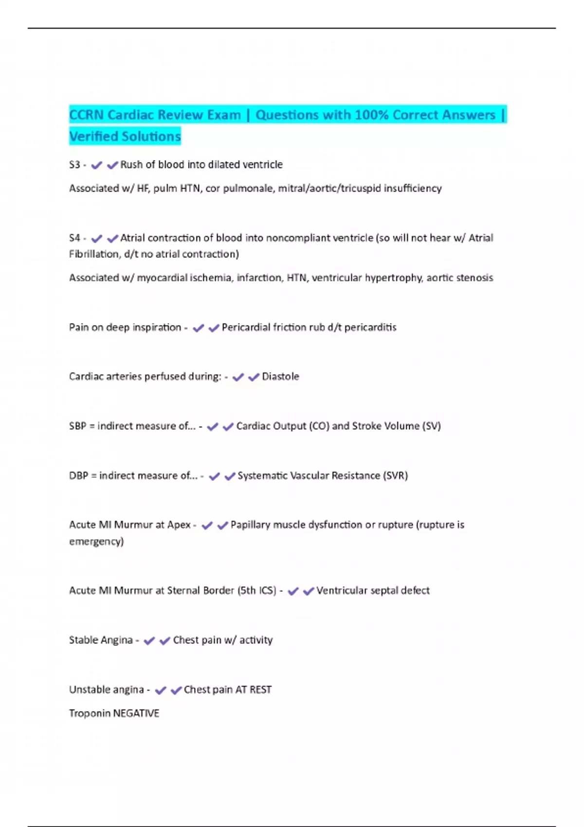 CCRN Cardiac Review Exam | Questions with 100% Correct Answers | Verified Solutions