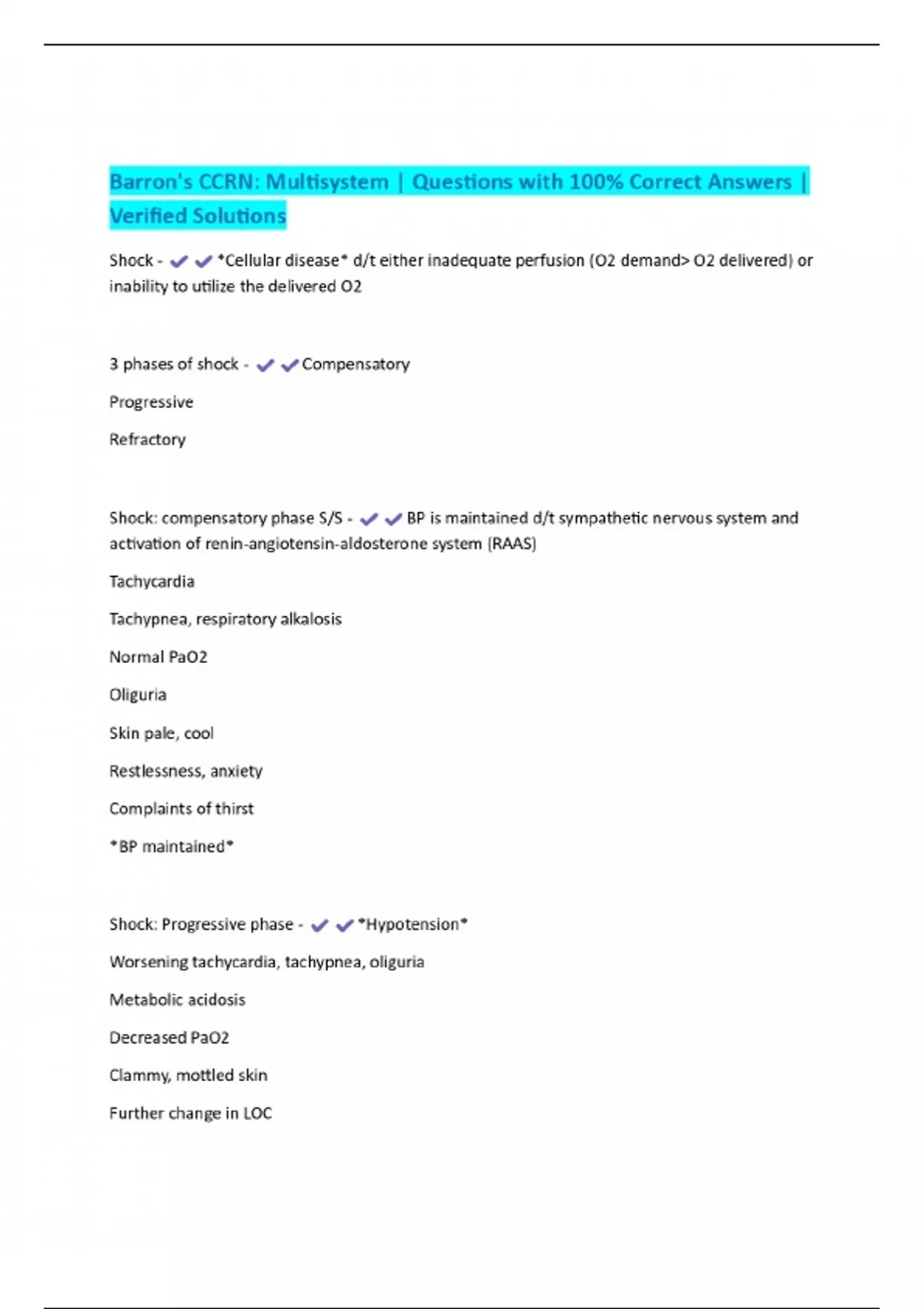 Barron's CCRN: Multisystem | Questions with 100% Correct Answers | Verified Solutions