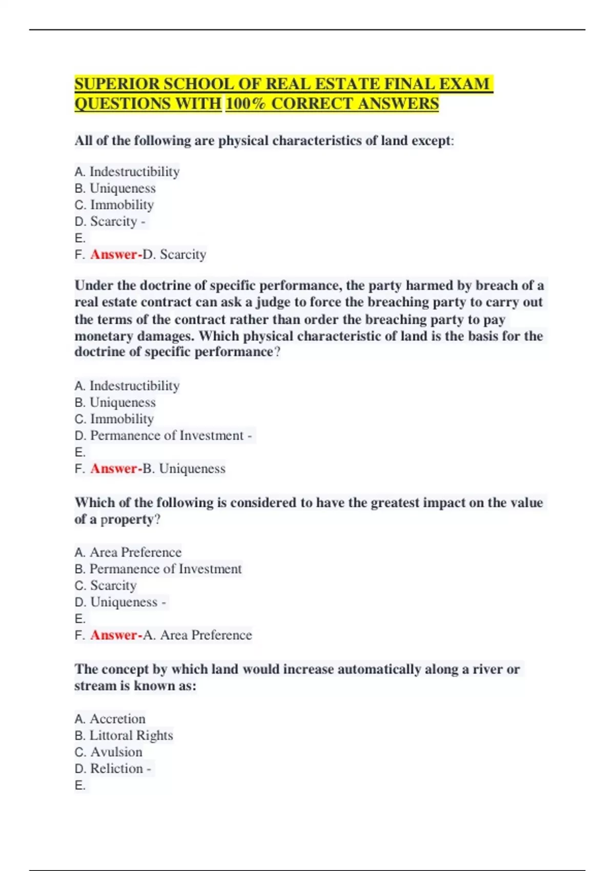 QUESTIONS WITH 100% CORRECT ANSWERS