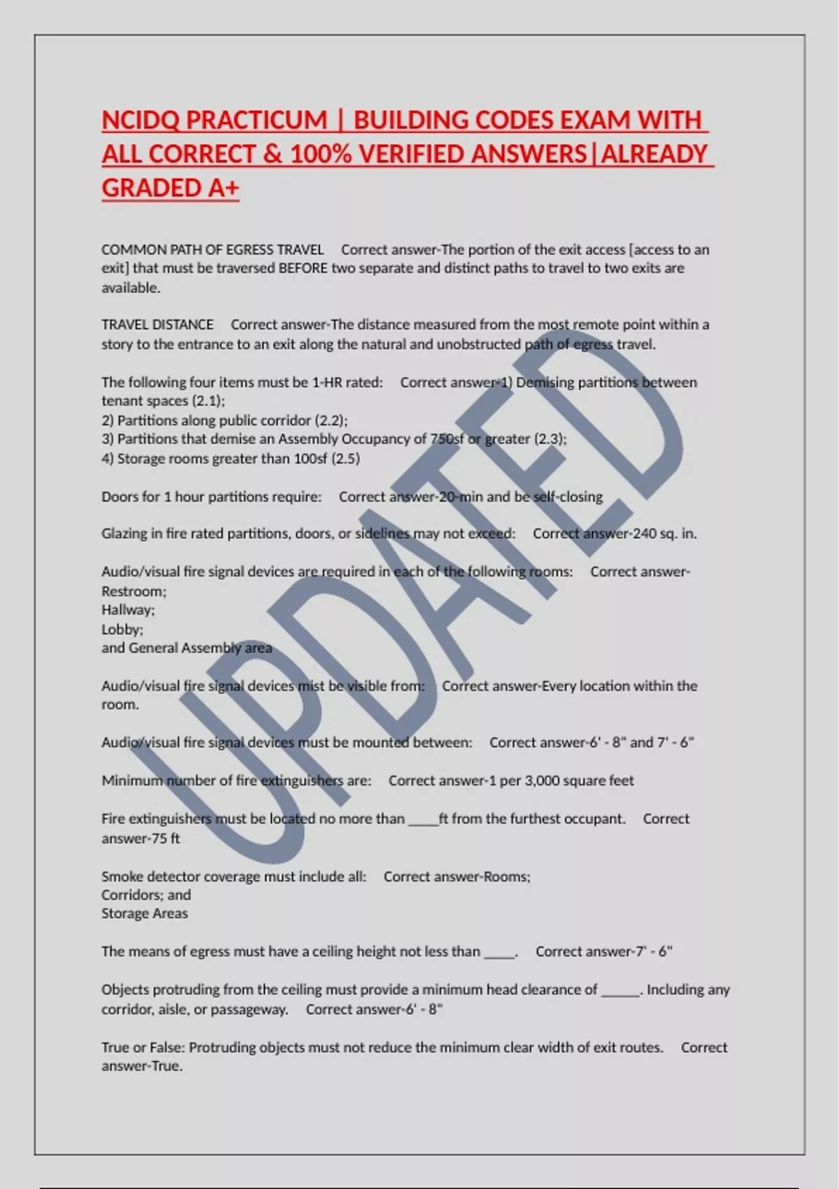 NCIDQ PRACTICUM | BUILDING CODES EXAM WITH ALL CORRECT & 100% VERIFIED ANSWERS|ALREADY GRADED A+
