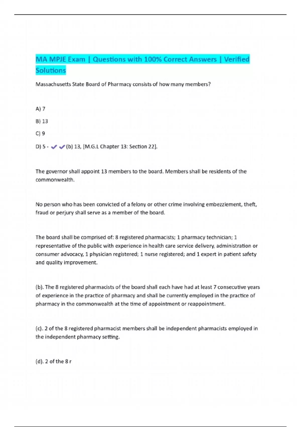 MA MPJE Exam | Questions with 100% Correct Answers | Verified Solutions