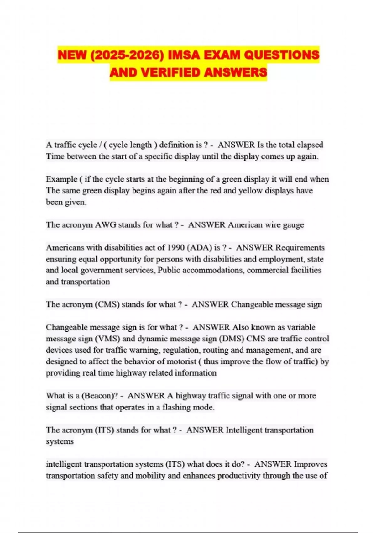 NEW () IMSA EXAM QUESTIONS AND VERIFIED ANSWERS....