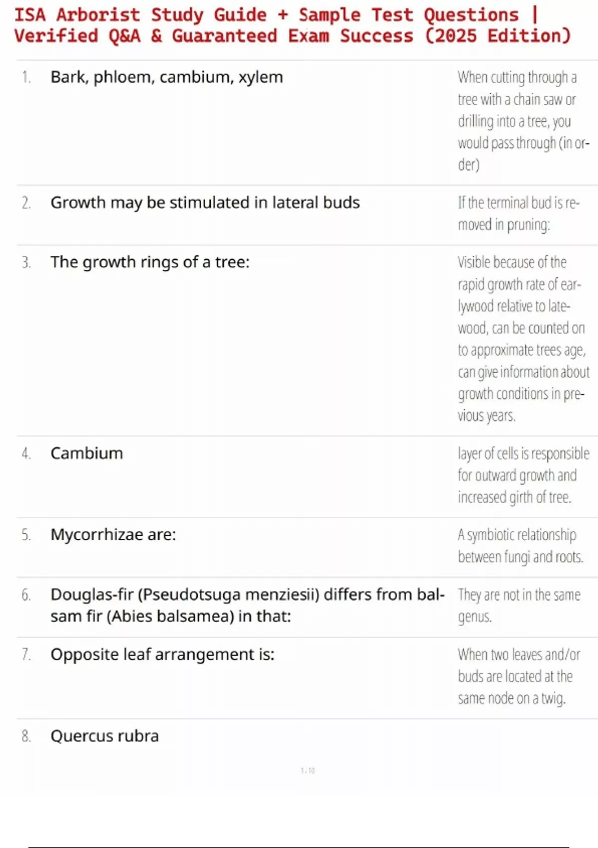 Get certified with confidence using this ISA Arborist Study Guide, featuring verified sample test questions and answers, essential tree care principles, safety standards, pruning techniques, pest management, and more. Tailored for 2025 exam takers — your guaranteed prep for ISA Certified Arborist success.