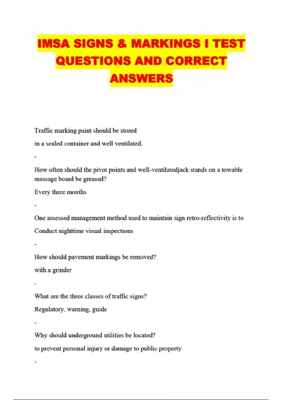 IMSA SIGNS & MARKINGS I TEST QUESTIONS AND CORRECT ANSWERS...