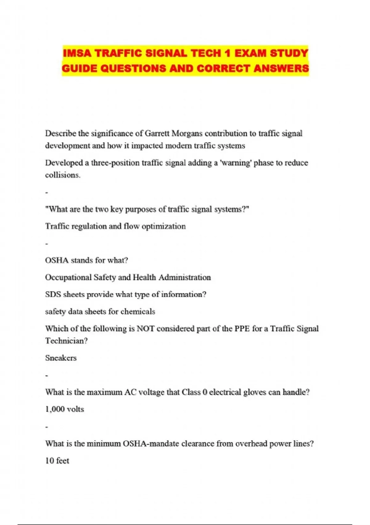 IMSA TRAFFIC SIGNAL TECH 1 EXAM STUDY GUIDE QUESTIONS AND CORRECT ANSWERS...