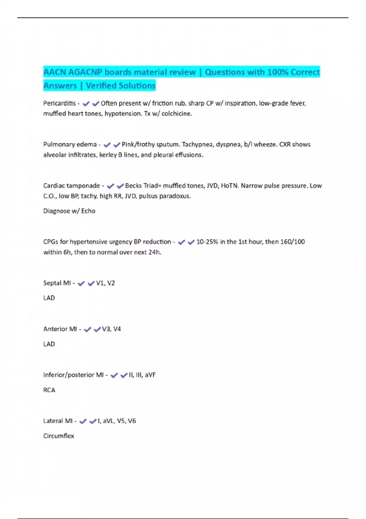 AACN AGACNP boards material review | Questions with 100% Correct Answers | Verified Solutions