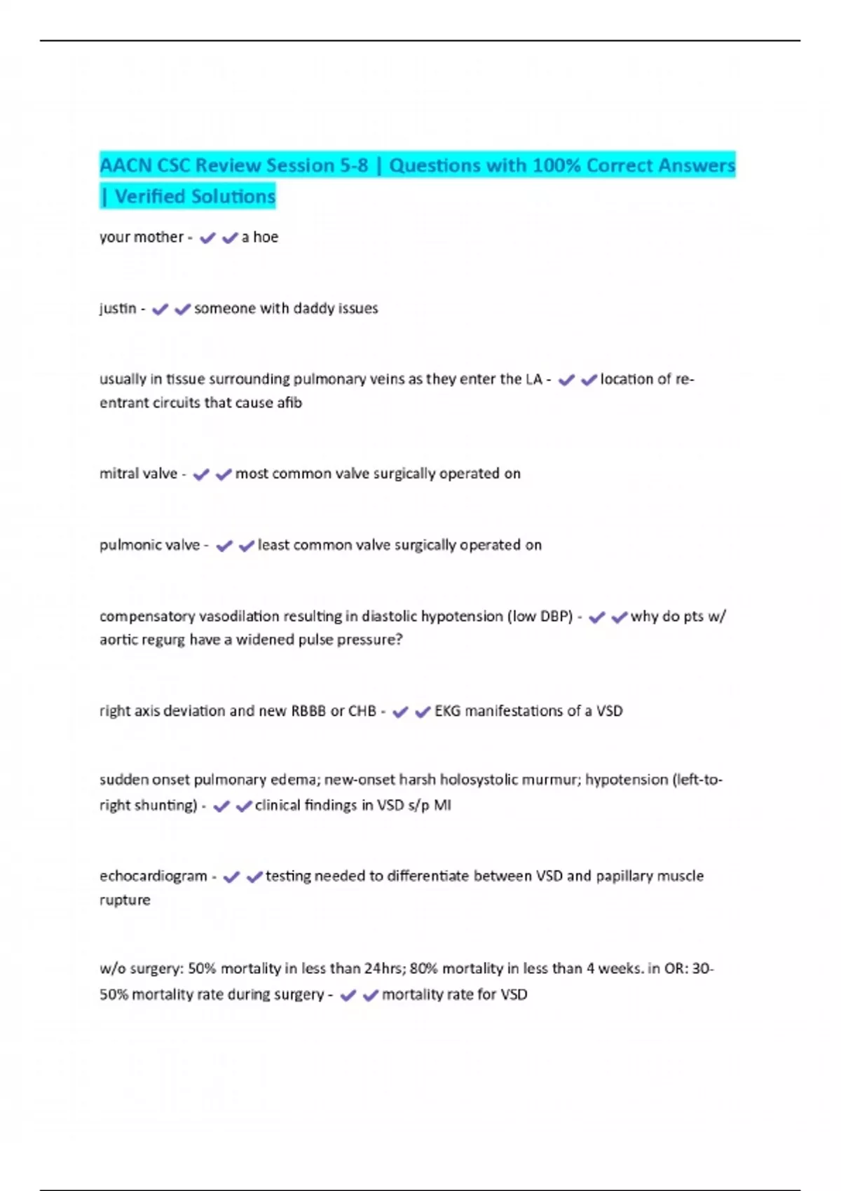 AACN CSC Review Session 5-8 | Questions with 100% Correct Answers | Verified Solutions