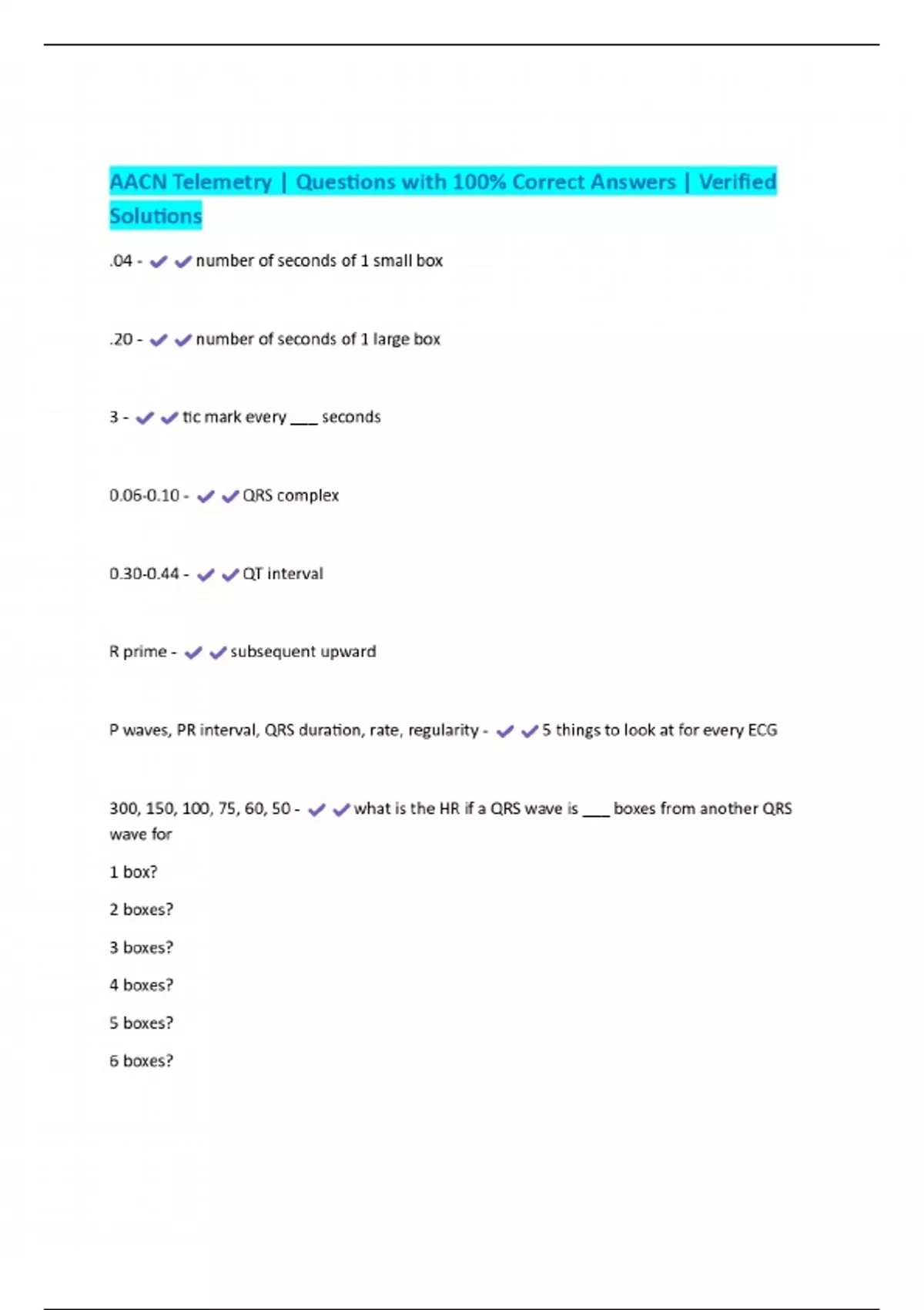 AACN Telemetry | Questions with 100% Correct Answers | Verified Solutions