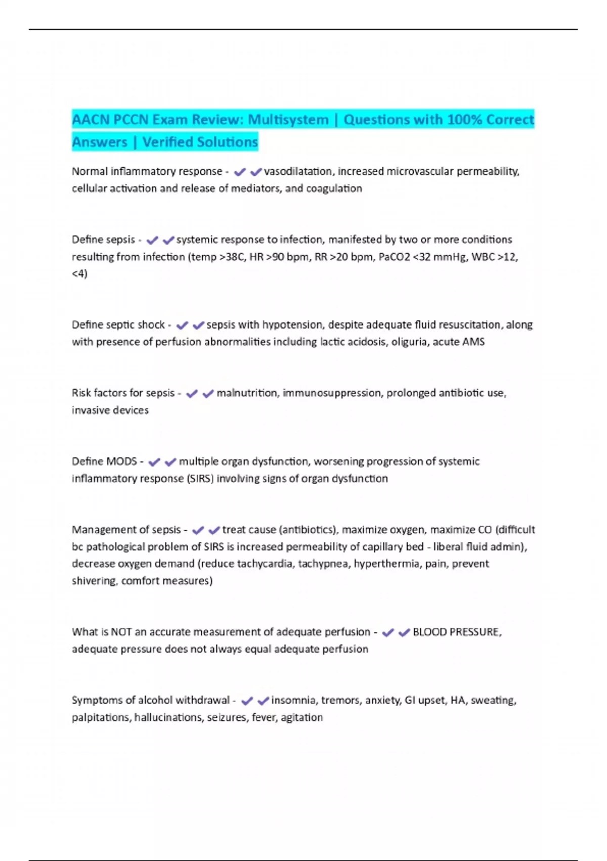 AACN PCCN Exam Review: Multisystem | Questions with 100% Correct Answers | Verified Solutions