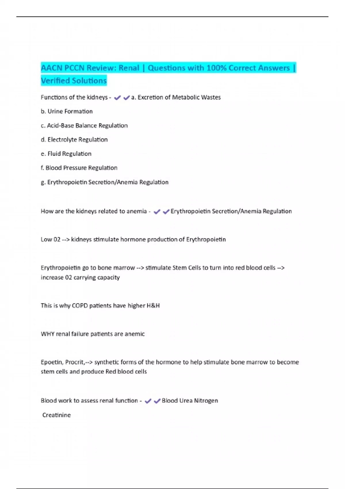 AACN PCCN Review: Renal | Questions with 100% Correct Answers | Verified Solutions